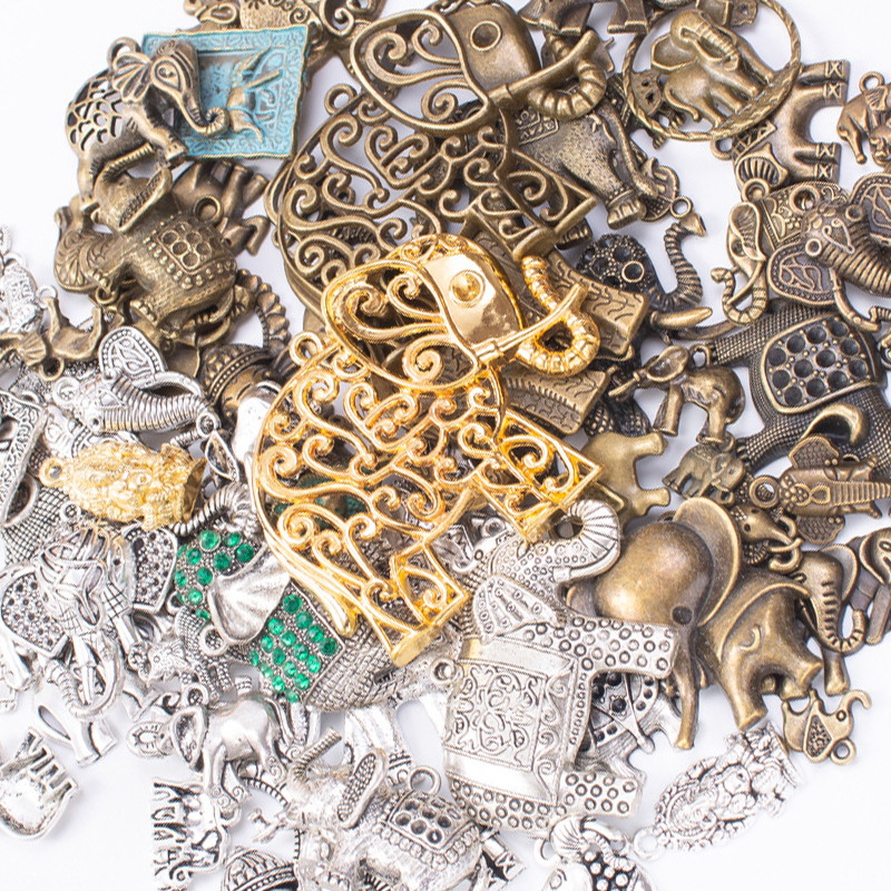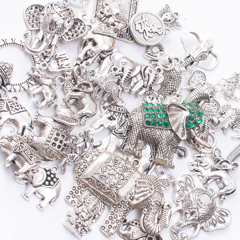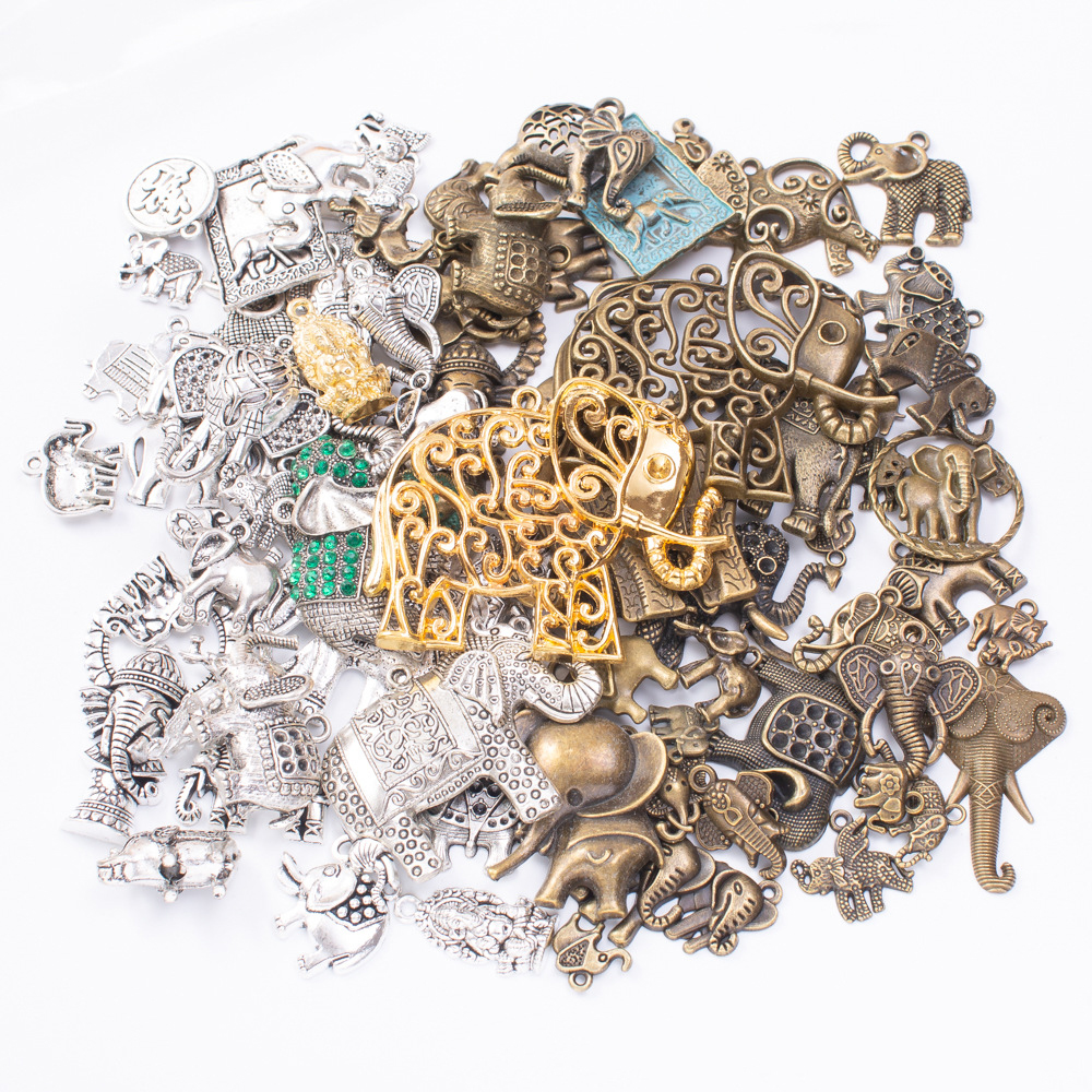 Zinc Alloy Animal Pendants, Elephant, plated, mixed pattern & DIY & with rhinestone, more colors for choice, pendant length 10-60mm, 100G/Bag, Sold By Bag