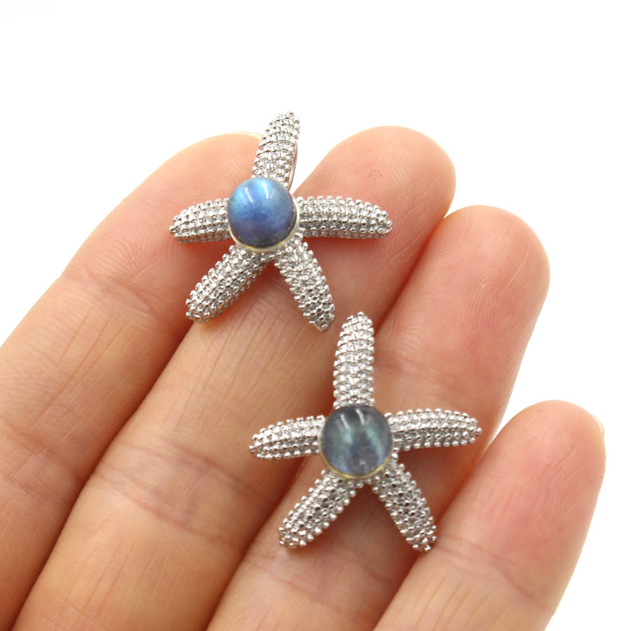 Zinc Alloy Animal Pendants, with Labradorite, silver color plated, DIY, silver color, 22x22mm, Sold By PC
