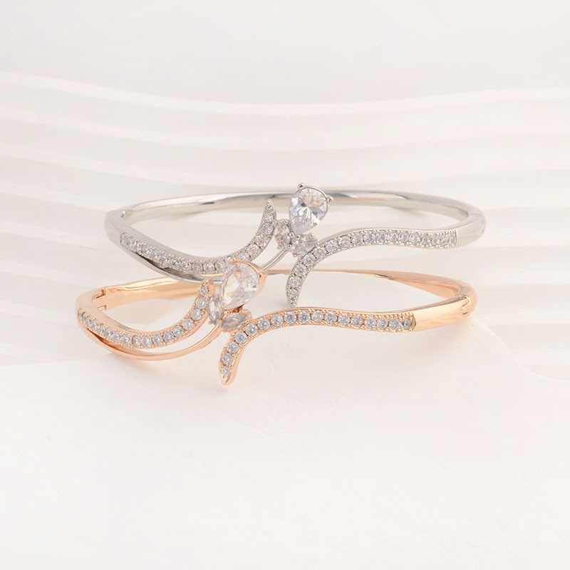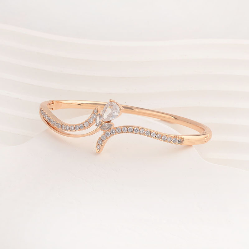 Rhinestone Zinc Alloy Bangle, Flower, rose gold color plated, with rhinestone nickel, lead & cadmium free Inner Approx Approx 7 Inch