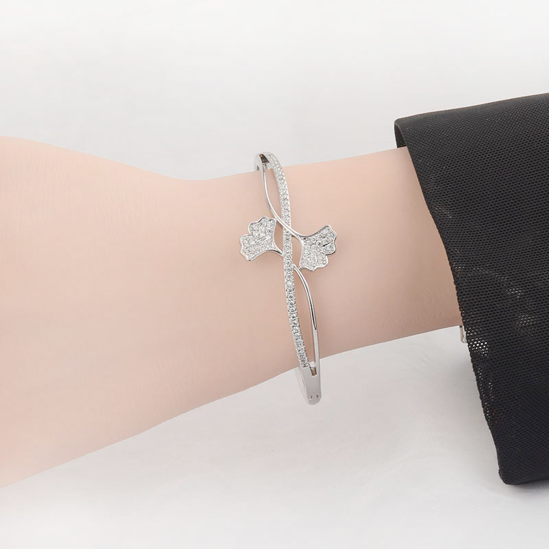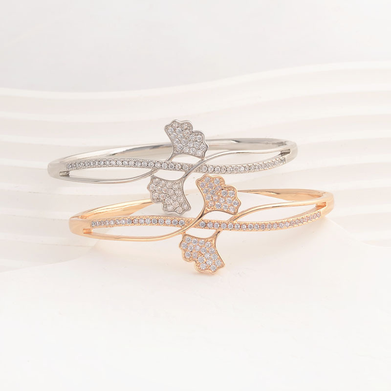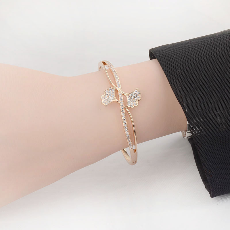 Zinc Alloy Bangle, Leaf, plated, for woman & with rhinestone, more colors for choice, Inner Diameter:Approx 63x53mm, Sold By PC