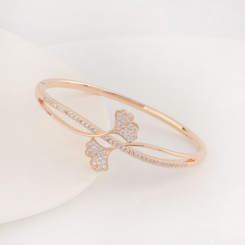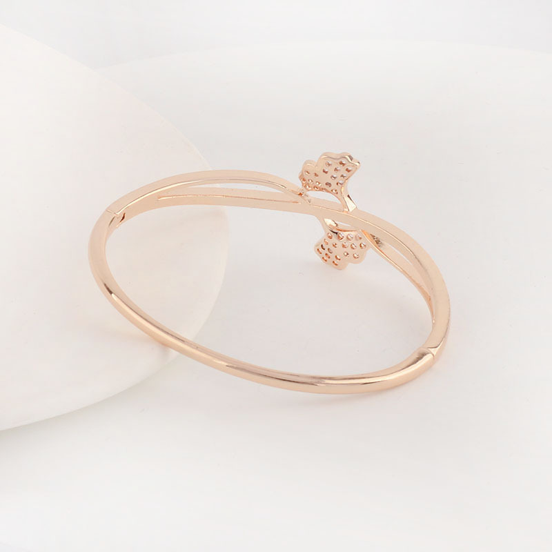 Rhinestone Zinc Alloy Bangle, Flower, rose gold color plated, with rhinestone nickel, lead & cadmium free Inner Approx Approx 7 Inch