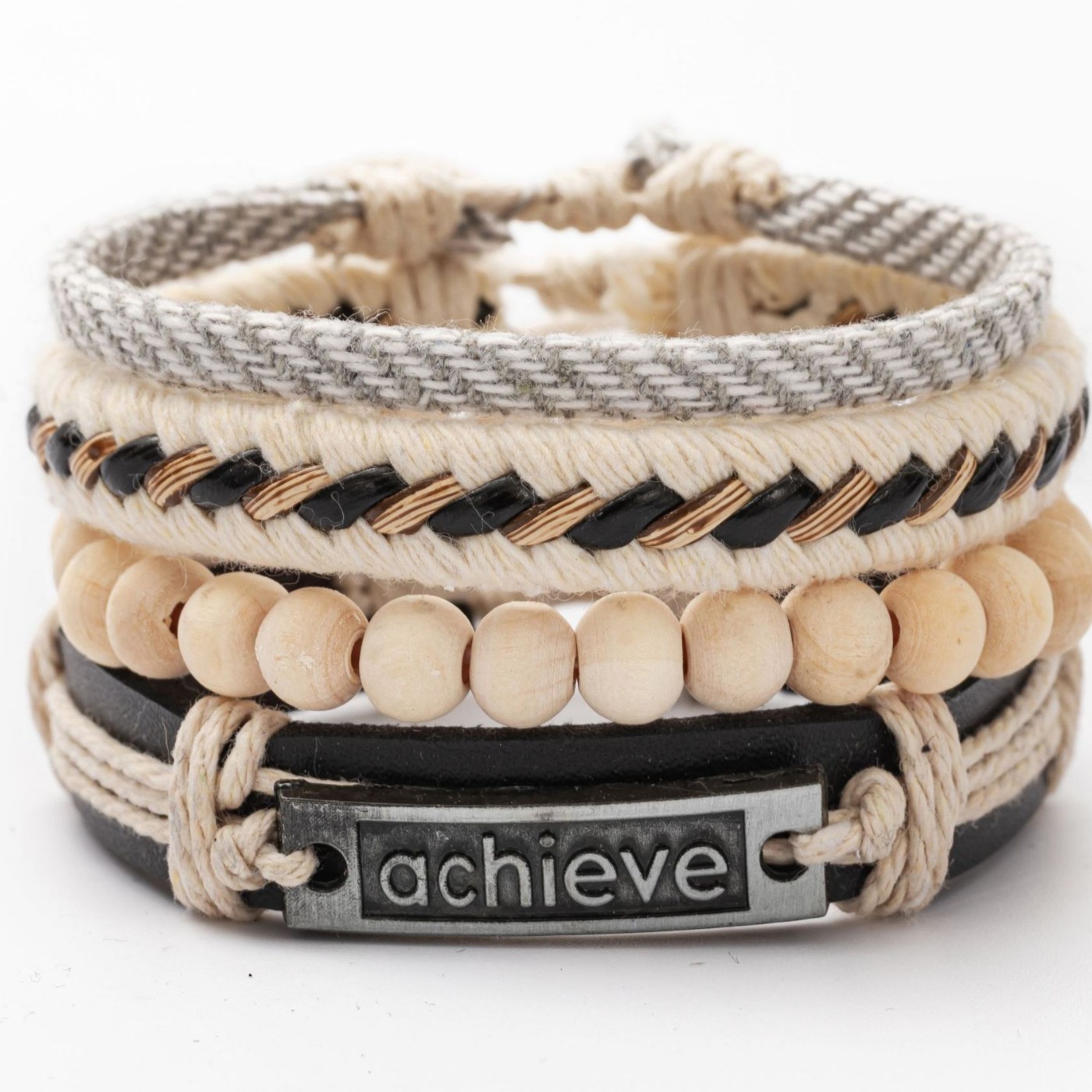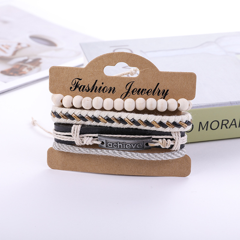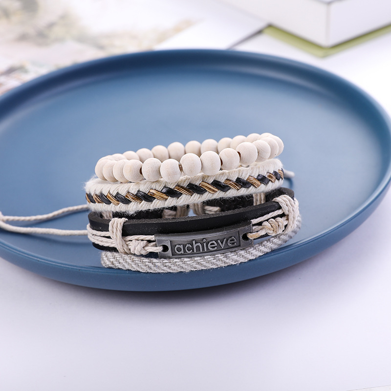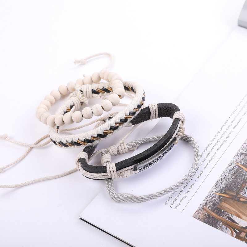 Zinc Alloy Bracelet Set, with Cowhide & Wax Cord & Wood, handmade, 4 pieces & fashion jewelry & for man, Length:Approx 28 cm, Sold By Set