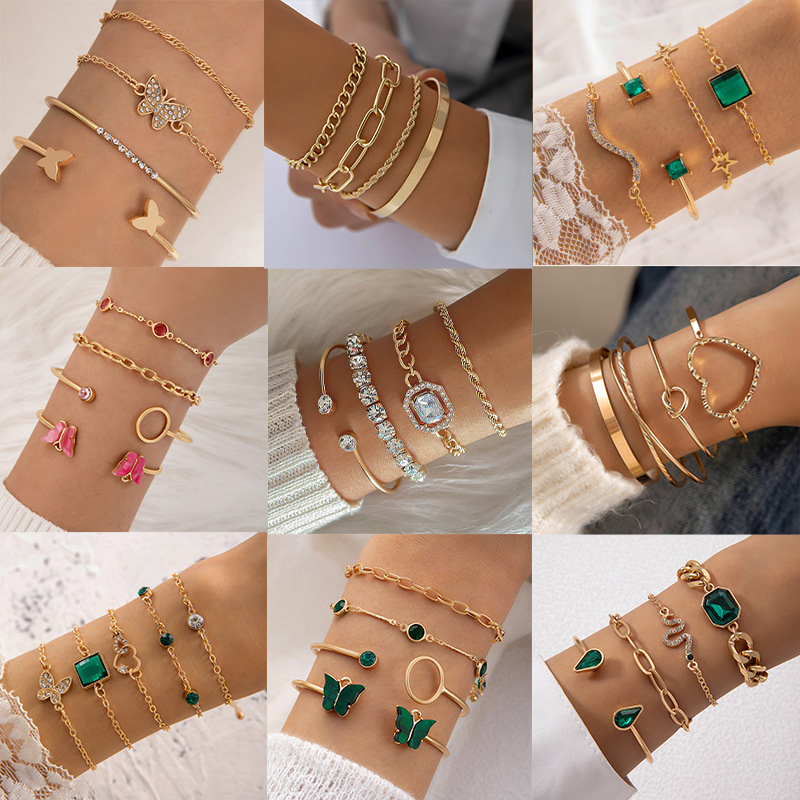 Zinc Alloy Bracelet Set, with Resin, gold color plated, different styles for choice & for woman & with rhinestone, more colors for choice, Sold By Set