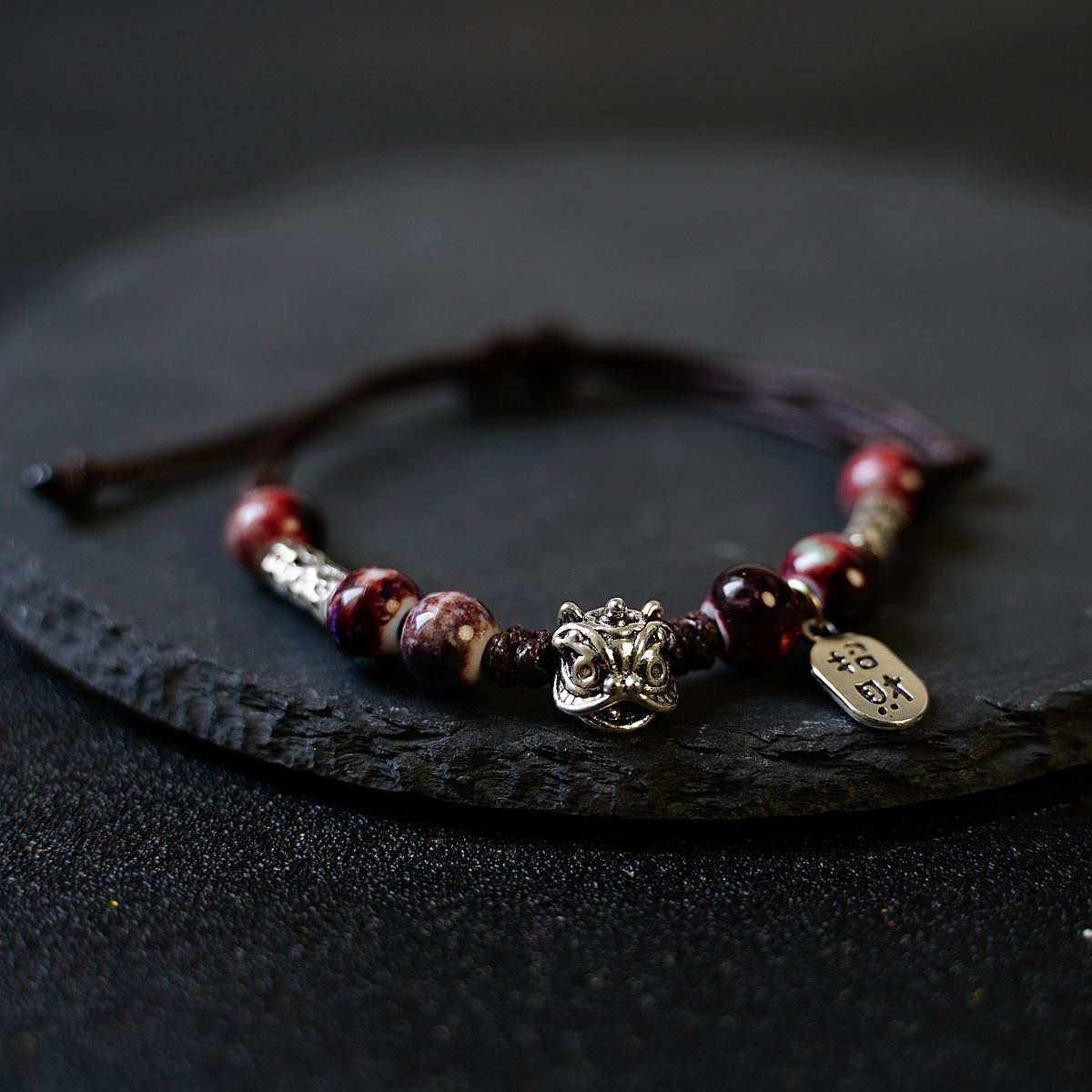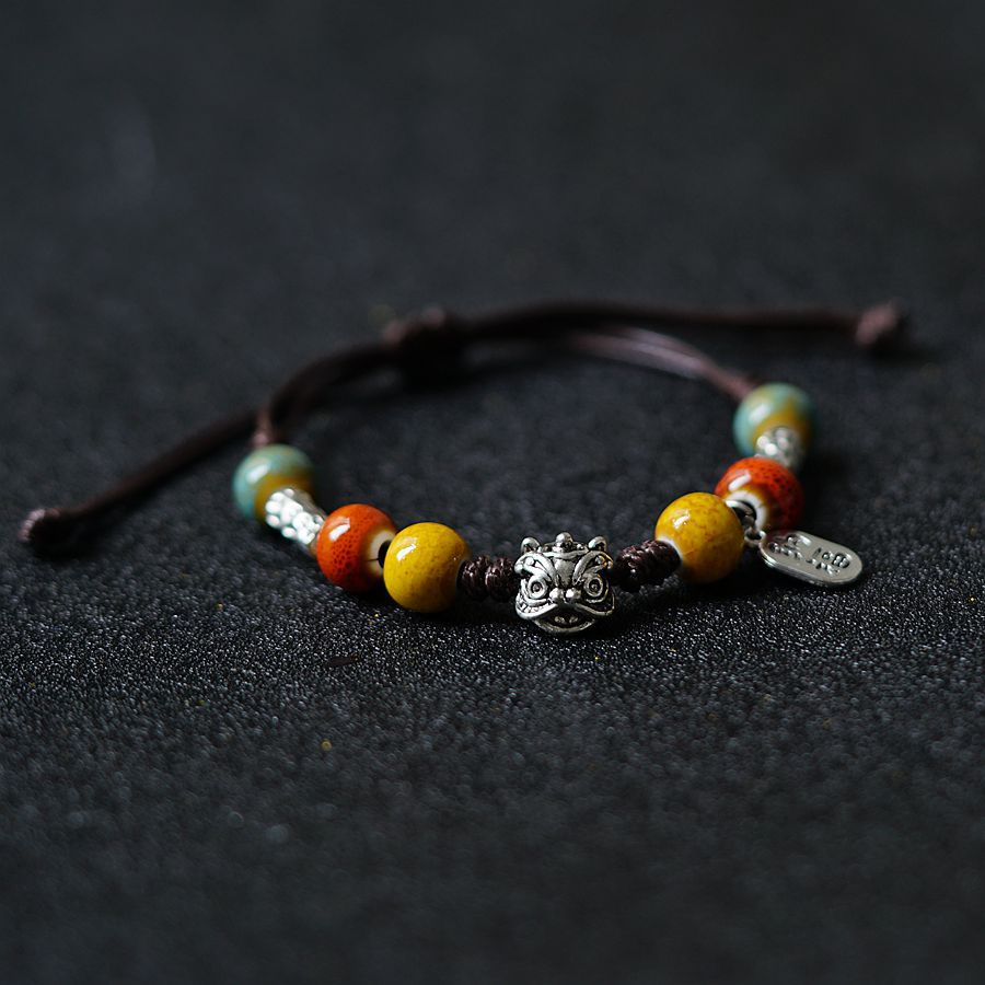 Zinc Alloy Bracelet, with Porcelain & Wax Cord, Lion, handmade, folk style & Unisex, more colors for choice, Length:Approx 5.9-7.9 Inch, Sold By PC