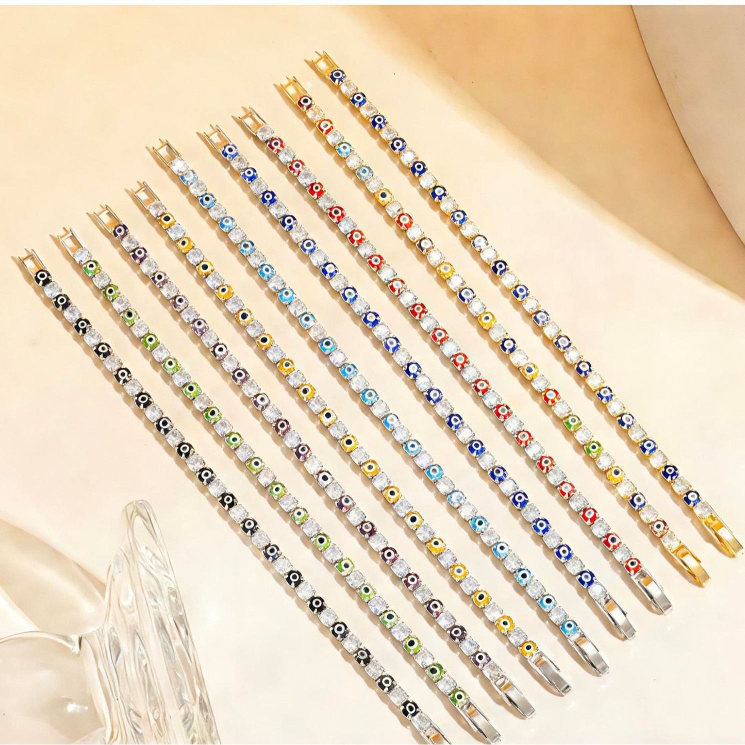 Zinc Alloy Bracelet, with Resin & Brass, Eye, micro pave cubic zirconia & for woman, more colors for choice, Sold By PC