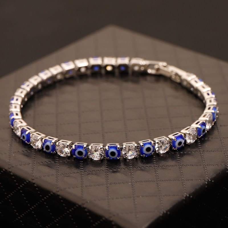 Evil Eye Jewelry Bracelet, 925 Sterling Silver, with 1 Inch extender chain, plated, oval chain & enamel & with cubic zirconia Approx 6 Inch
