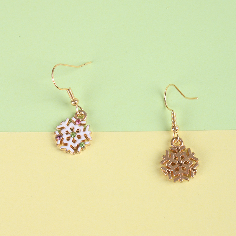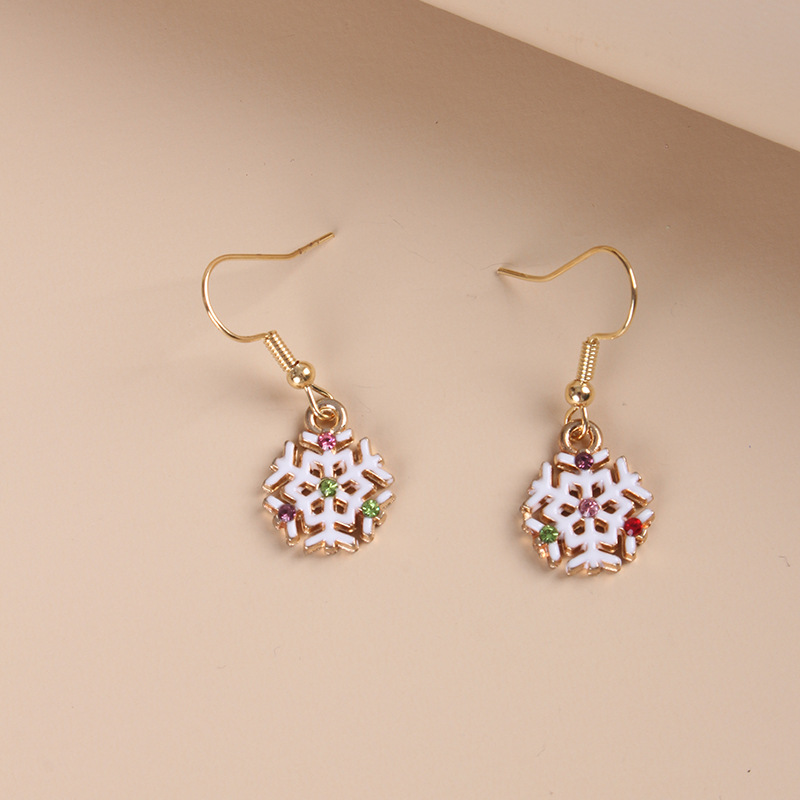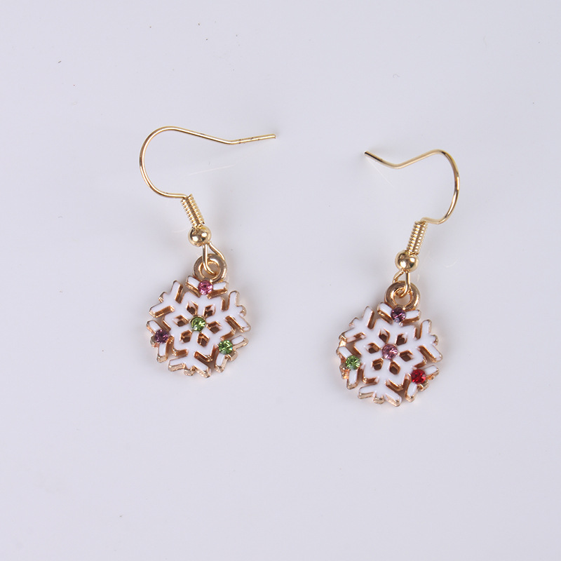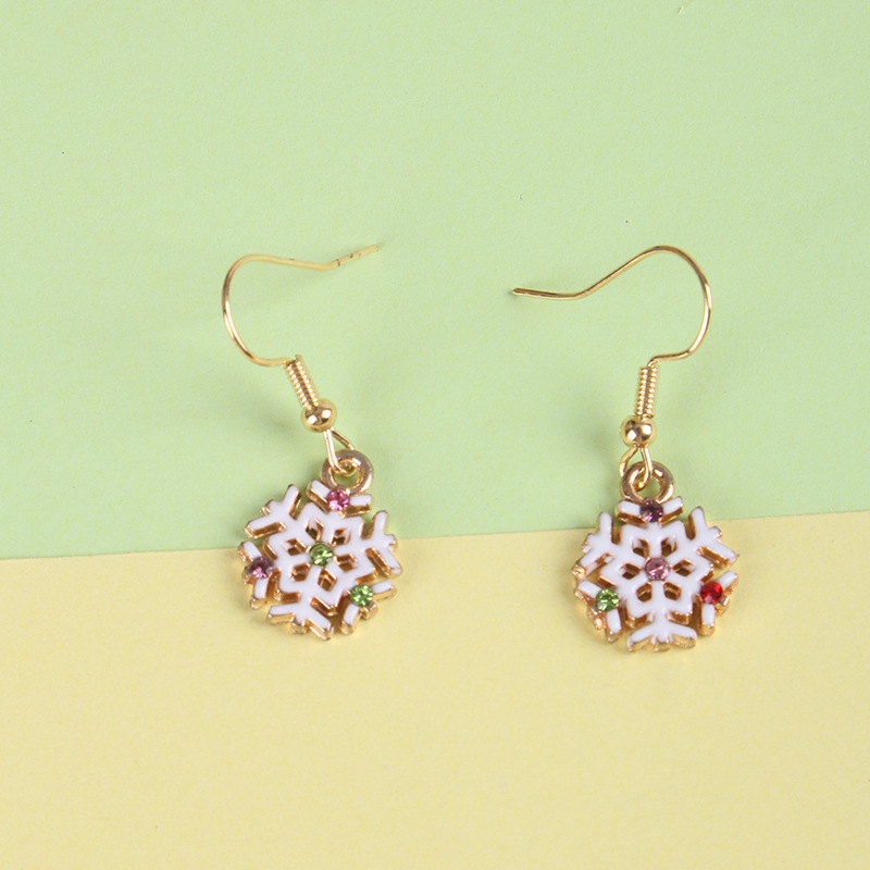 Zinc Alloy Drop Earring, Snowflake, gold color plated, Christmas Design & for woman & enamel & with rhinestone, 15x35mm, Sold By Pair