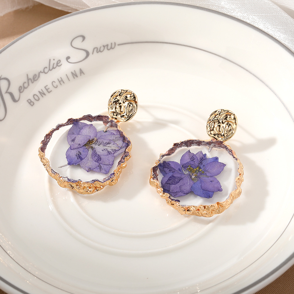 Zinc Alloy Drop Earring, Plastic, with Dried Flower & Zinc Alloy, epoxy gel, fashion jewelry, more colors for choice, 30x45mm, Sold By Pair
