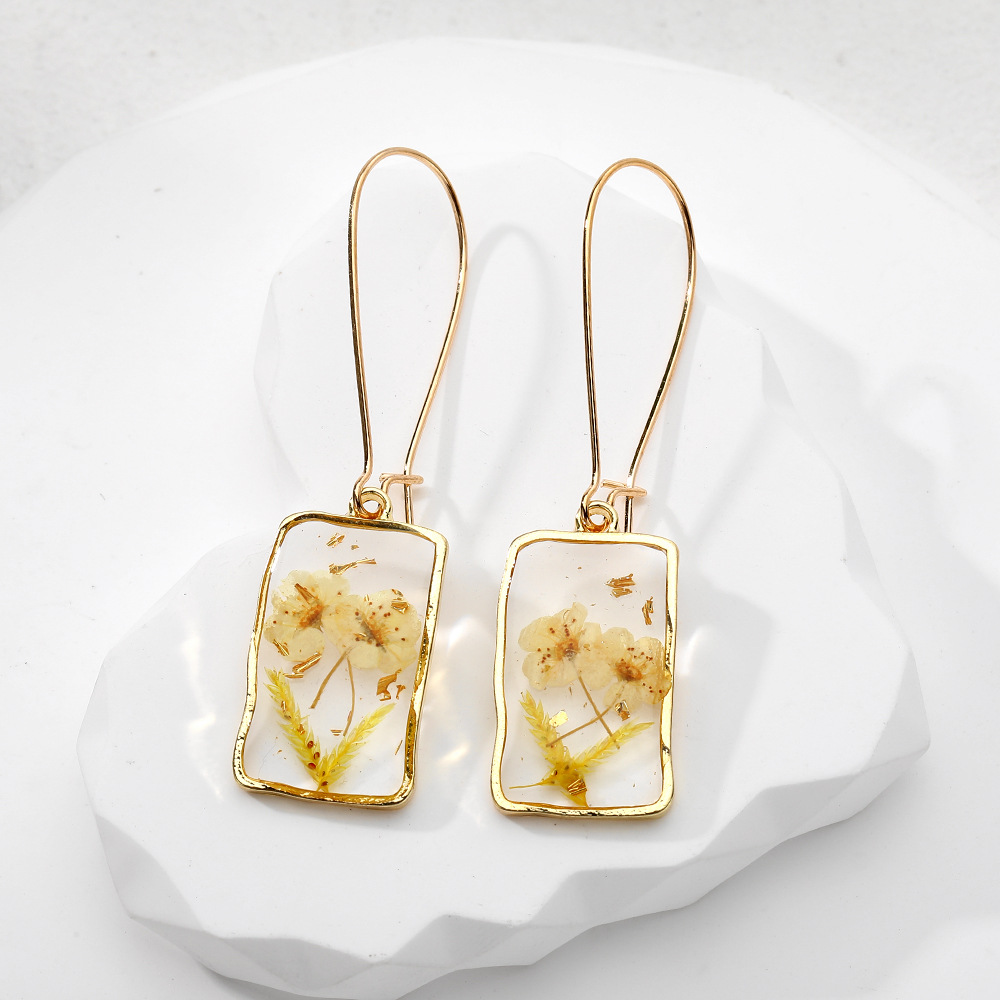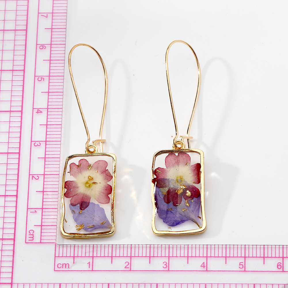 Zinc Alloy Drop Earring, Plastic, with Dried Flower & Zinc Alloy, epoxy gel, fashion jewelry, more colors for choice, Sold By Pair
