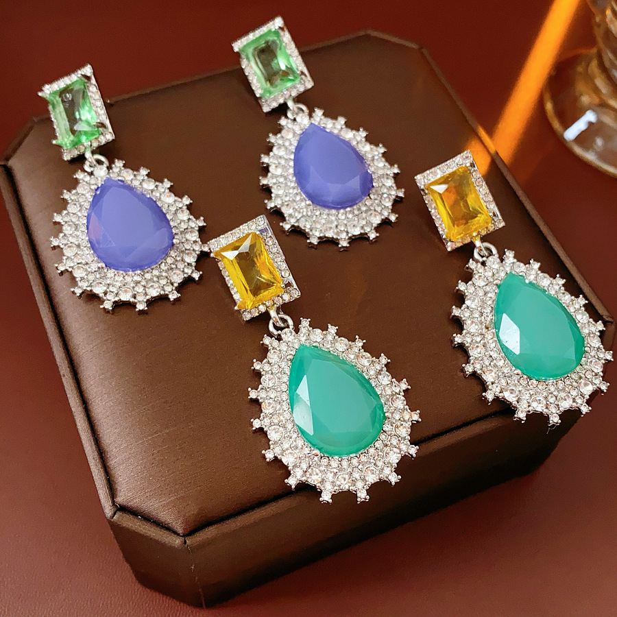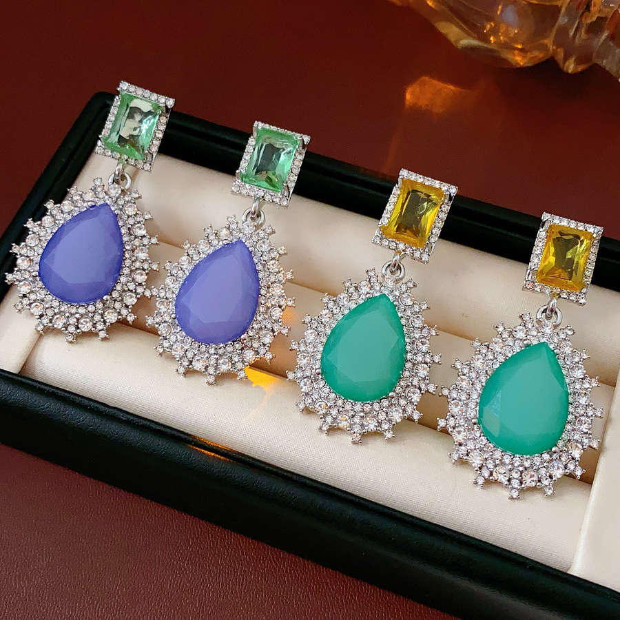 Zinc Alloy Drop Earring, Teardrop, plated, for woman & with rhinestone, more colors for choice, 28x54mm, Sold By Pair