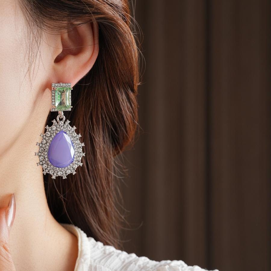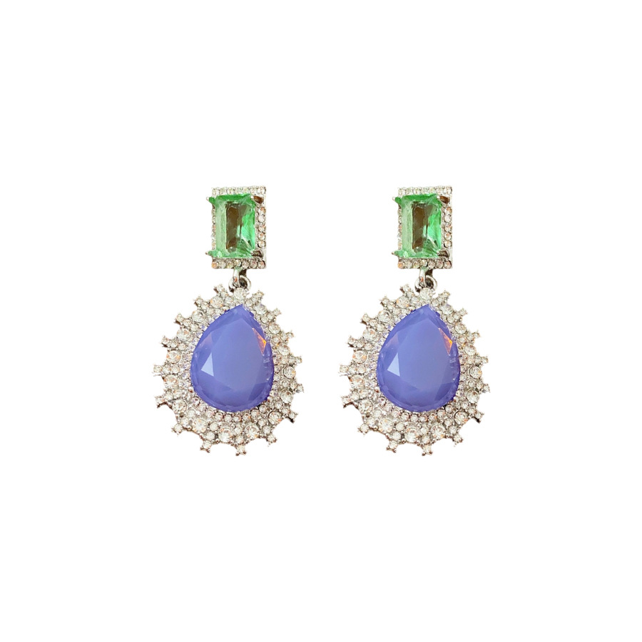 Zinc Alloy Rhinestone Drop Earring, iron earring hook, Rhombus, plated, with rhinestone lead & cadmium free