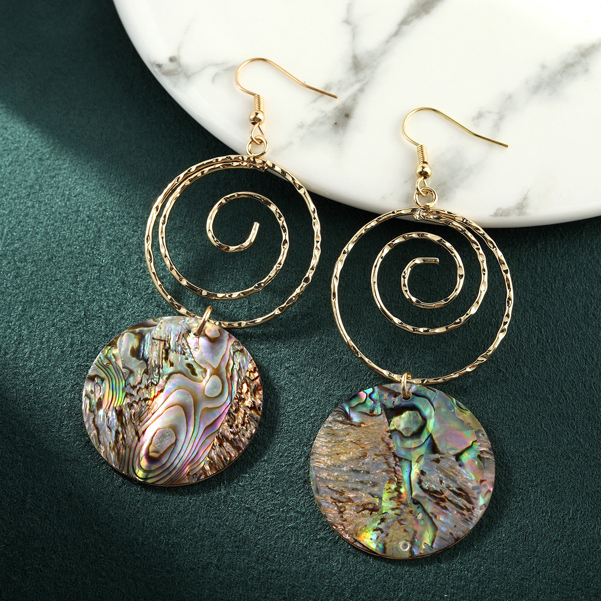 Zinc Alloy Drop Earring, with Abalone Shell, fashion jewelry & for woman & hollow, golden, Sold By Pair