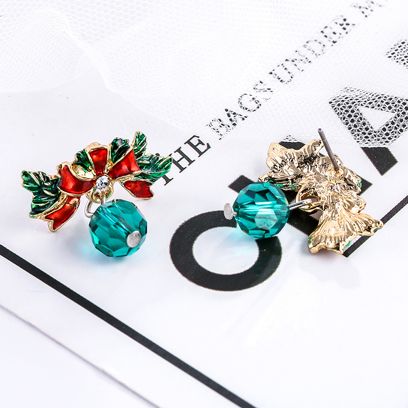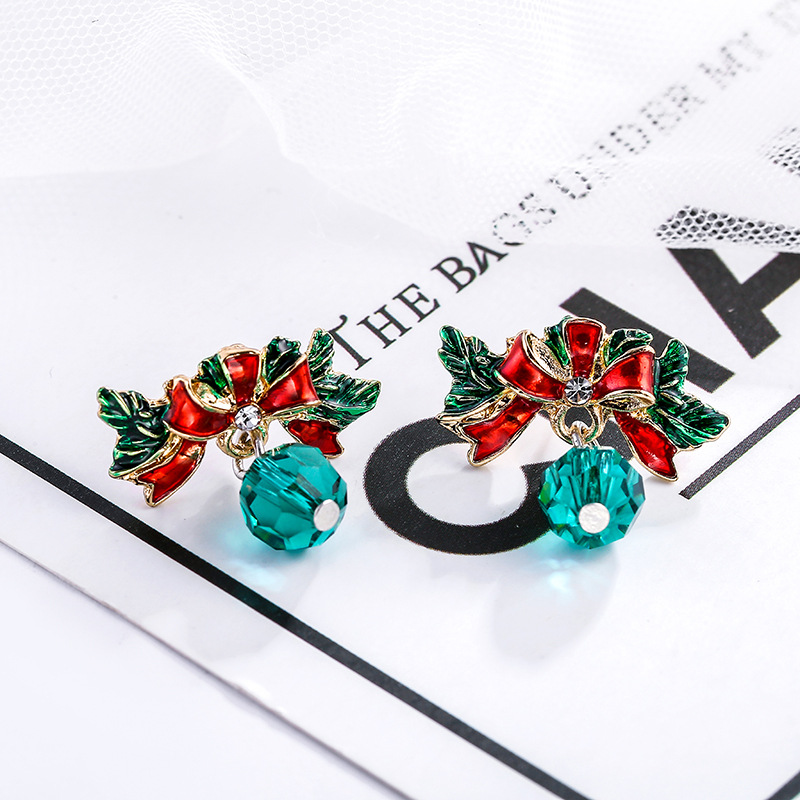 Zinc Alloy Drop Earring, with Crystal, gold color plated, Christmas Design & for woman & enamel & with rhinestone, earring length 20-30mm, Sold By Pair
