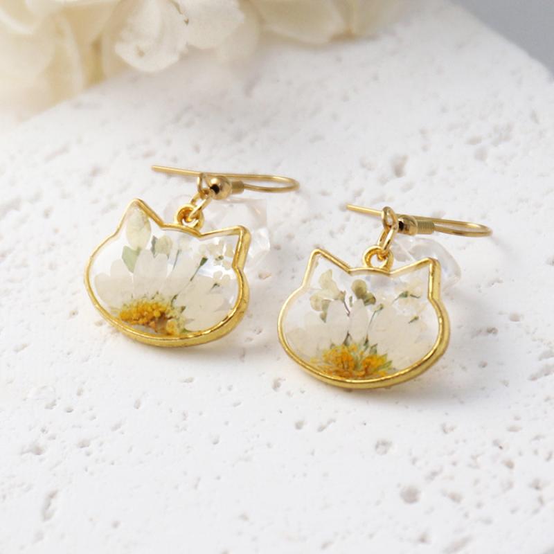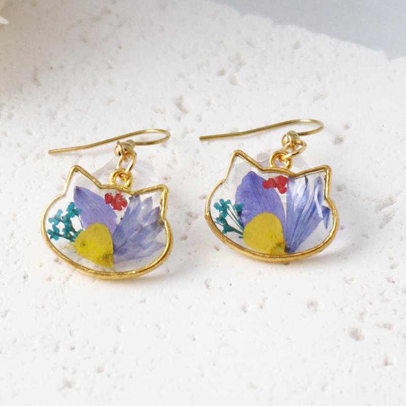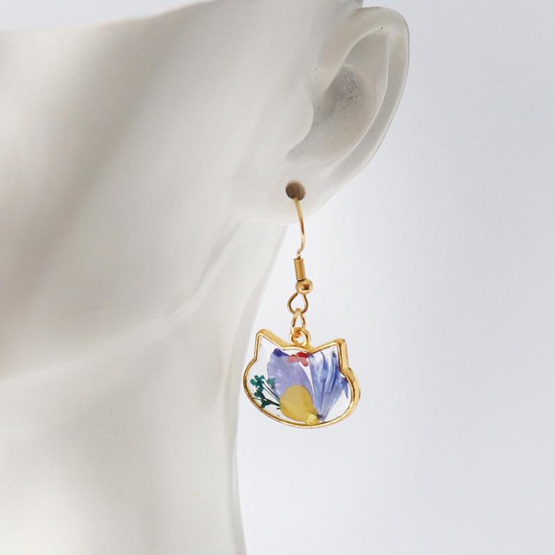 Zinc Alloy Drop Earring, with Dried Flower & Resin & 304 Stainless Steel, epoxy gel, fashion jewelry & different designs for choice & for woman, golden, 6Pairs/Bag, Sold By Bag