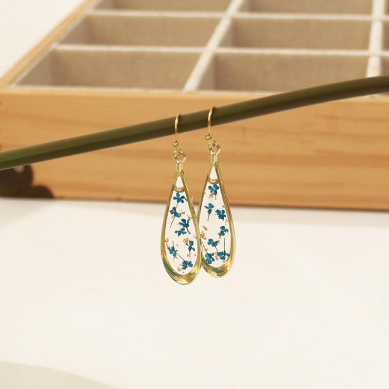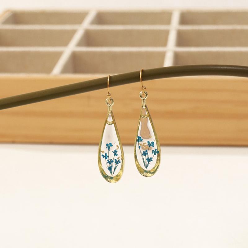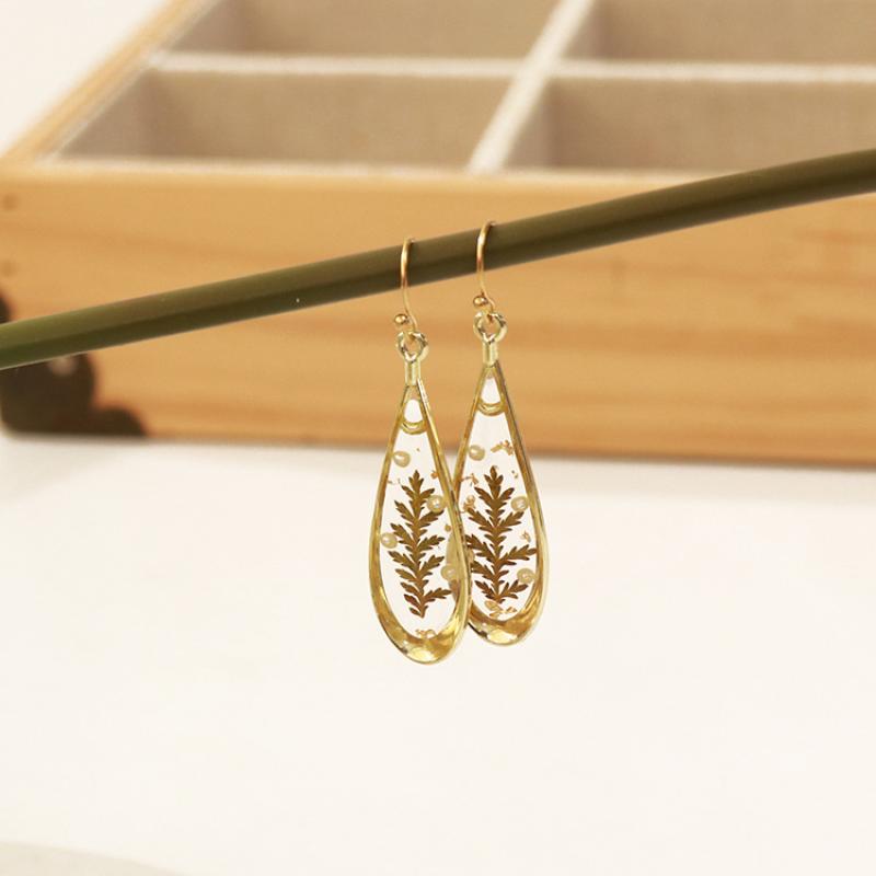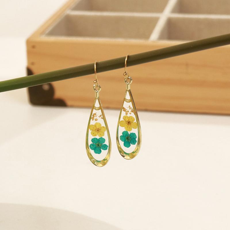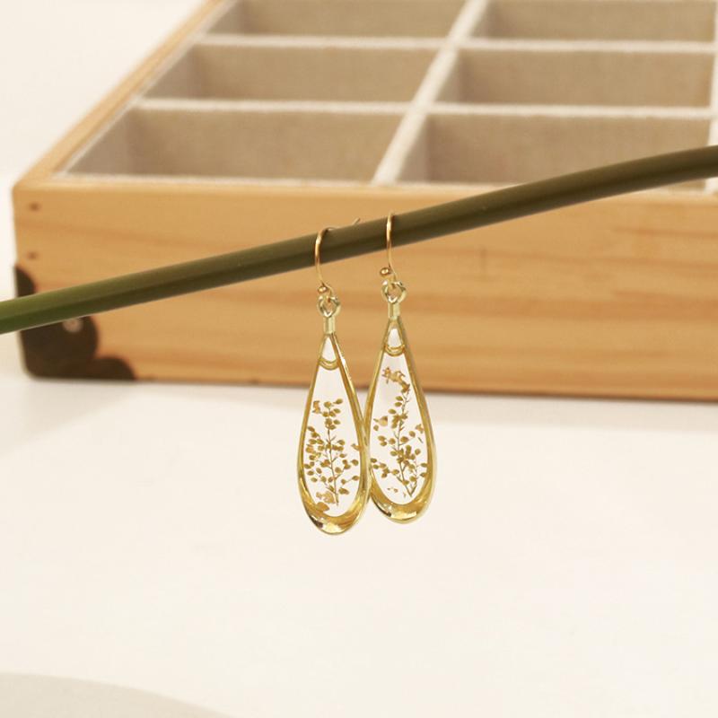 Zinc Alloy Drop Earring, with Dried Flower & Resin & 304 Stainless Steel, Teardrop, epoxy gel, different designs for choice & for woman & hollow, golden, 6Pairs/Bag, Sold By Bag