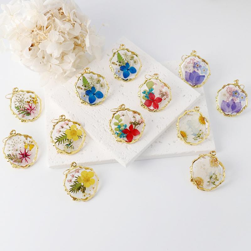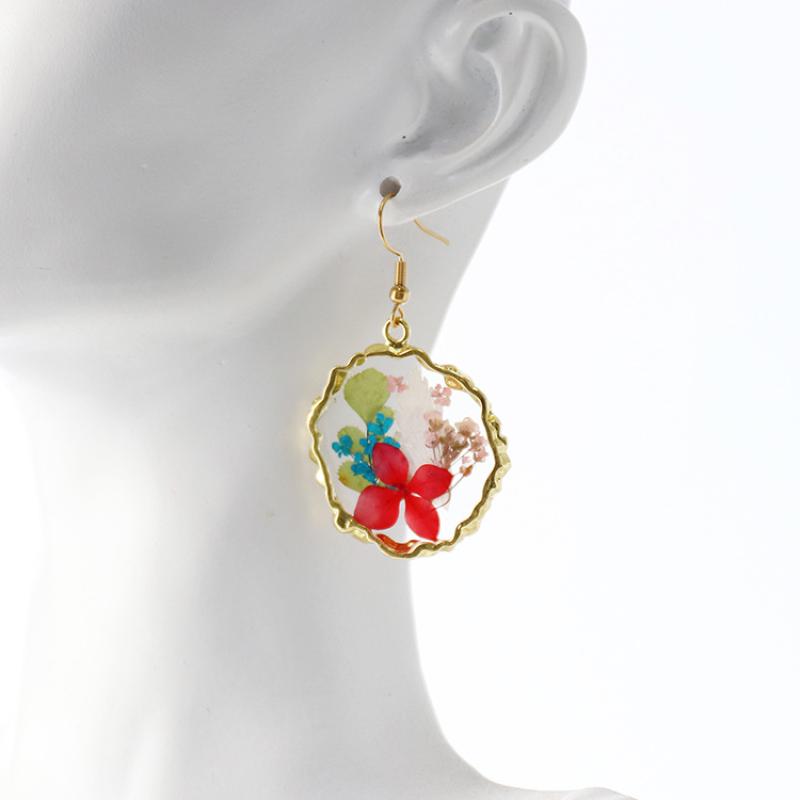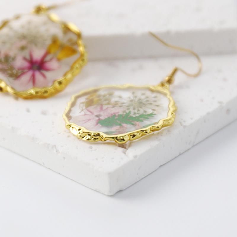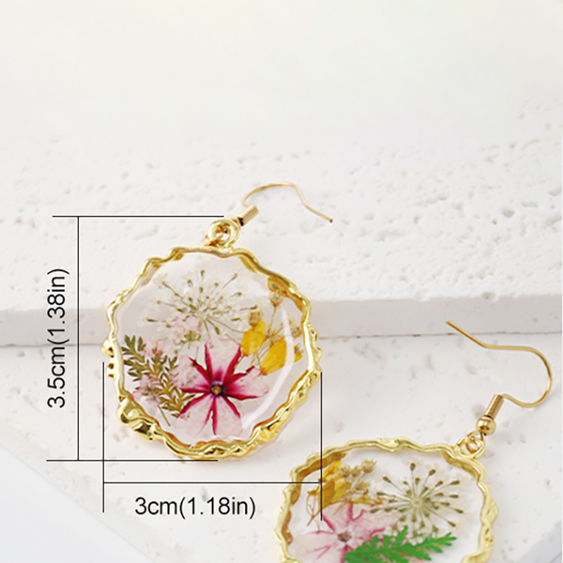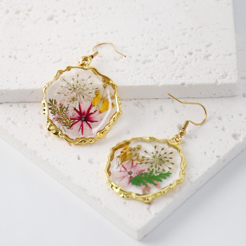 Zinc Alloy Drop Earring, with Dried Flower & Resin & 304 Stainless Steel, different designs for choice & for woman & epoxy gel, golden, 5Pairs/Bag, Sold By Bag