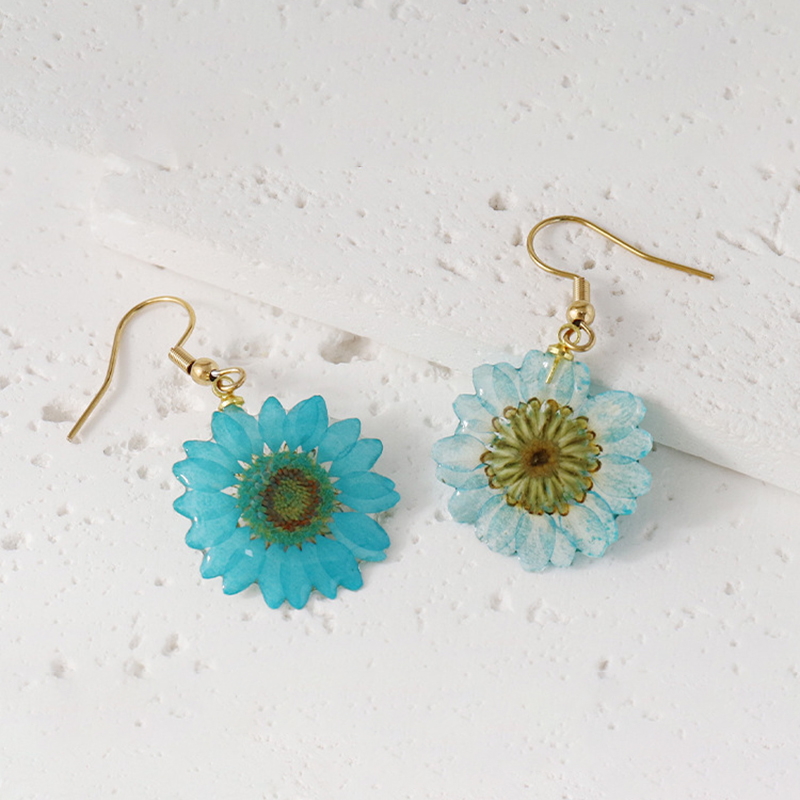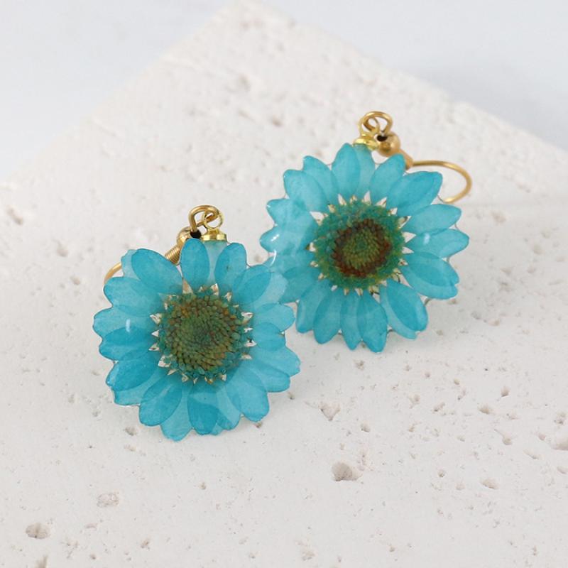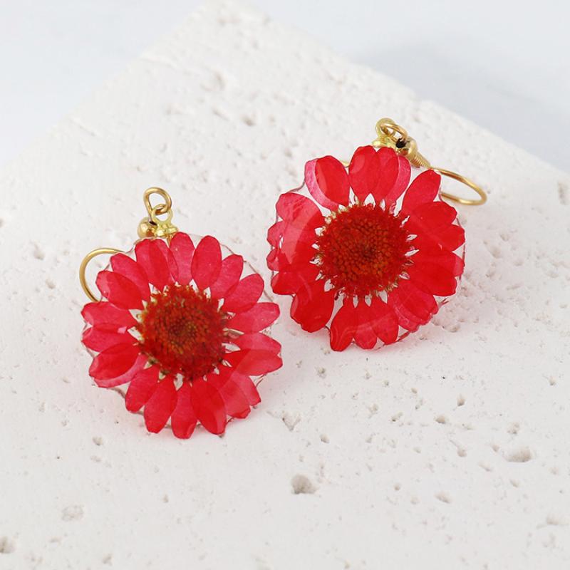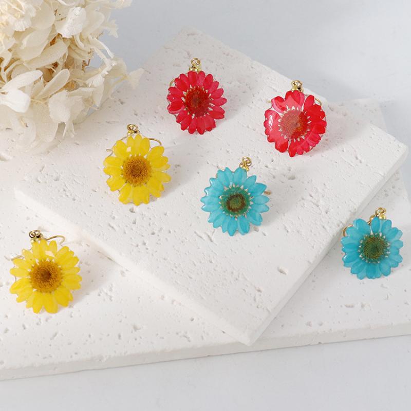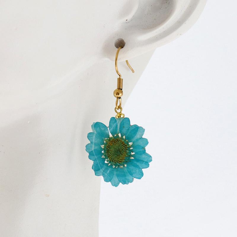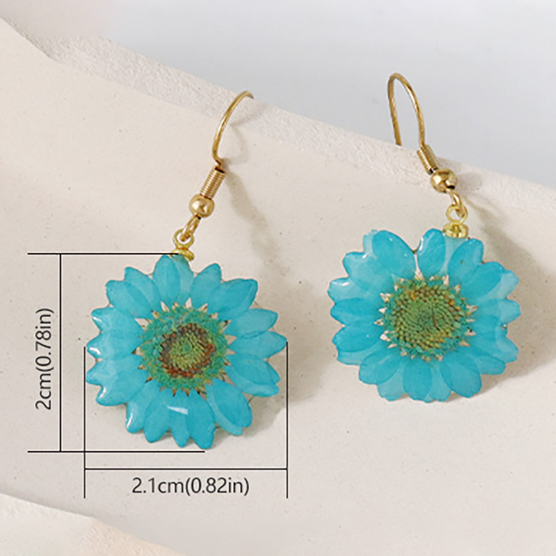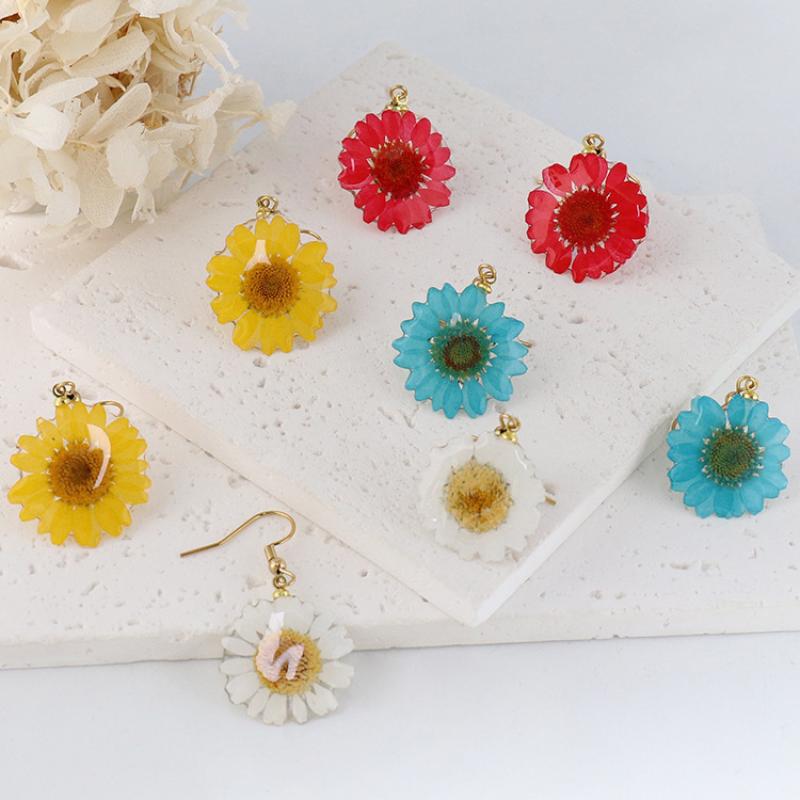 Zinc Alloy Drop Earring, with Dried Flower, Chrysamthemum, handmade, fashion jewelry & for woman & epoxy gel, more colors for choice, 6Pairs/Bag, Sold By Bag