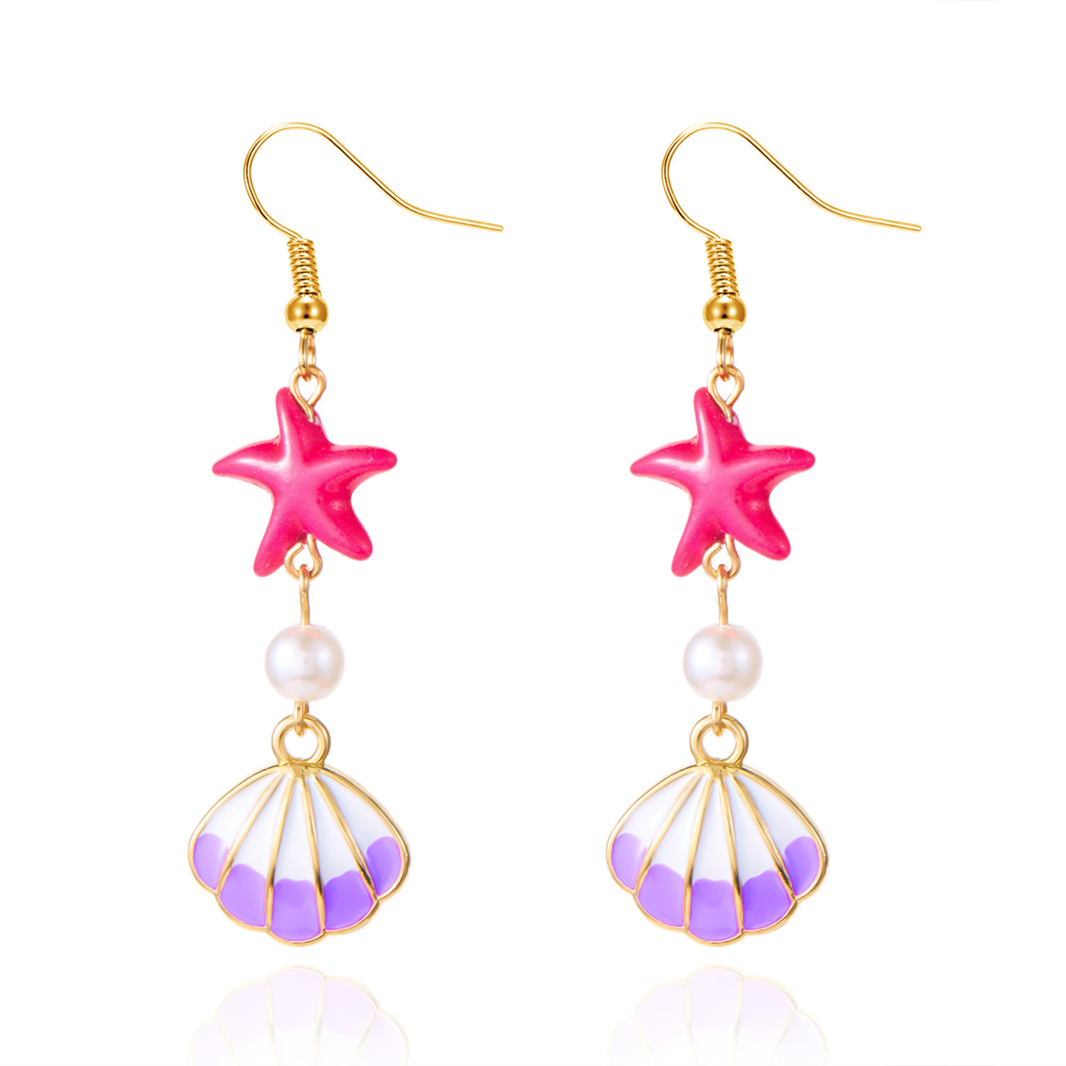 Zinc Alloy Drop Earring, with Plastic Pearl, Shell, gold color plated, for woman & enamel, more colors for choice, Sold By Pair