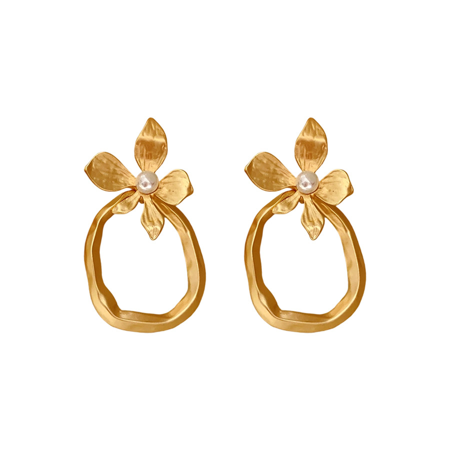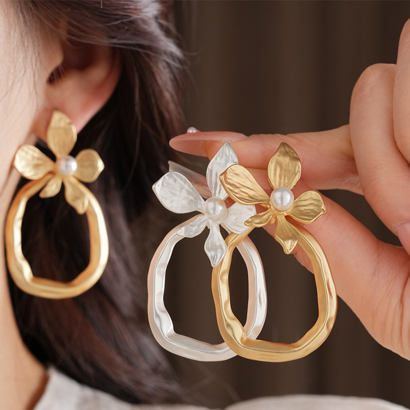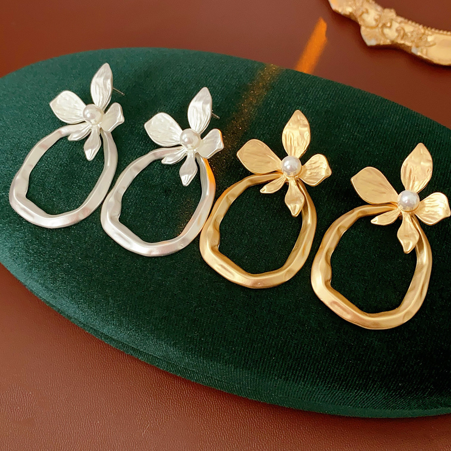 Zinc Alloy Drop Earring, with Plastic Pearl, Flower, plated, fashion jewelry & for woman & hollow, more colors for choice, 30x60mm, Sold By Pair