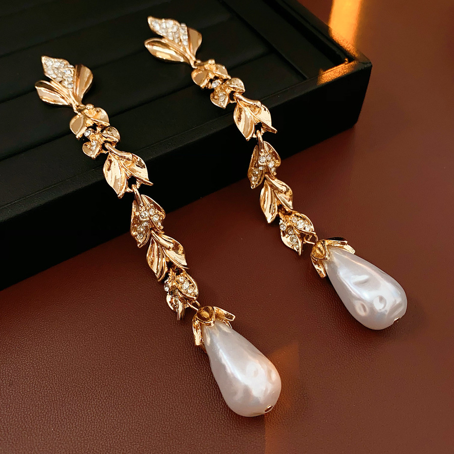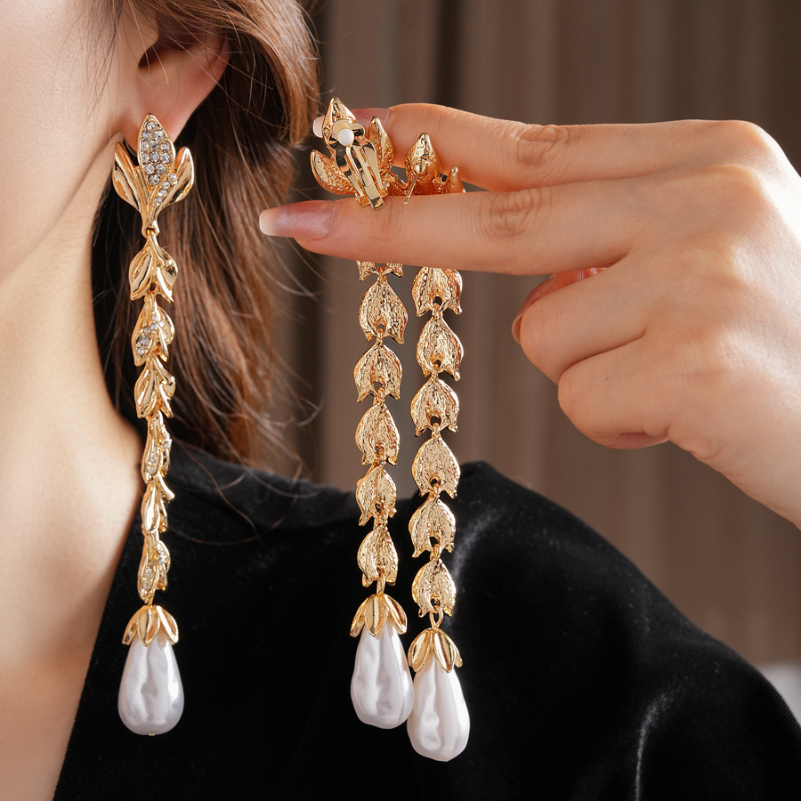 Zinc Alloy Drop Earring, with Plastic Pearl, gold color plated, different styles for choice & for woman & with rhinestone, 20x130mm, Sold By Pair