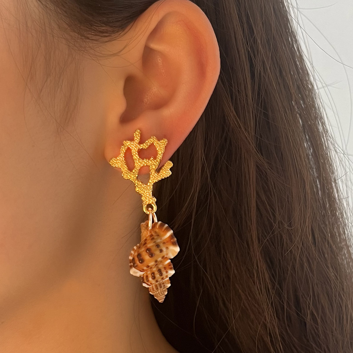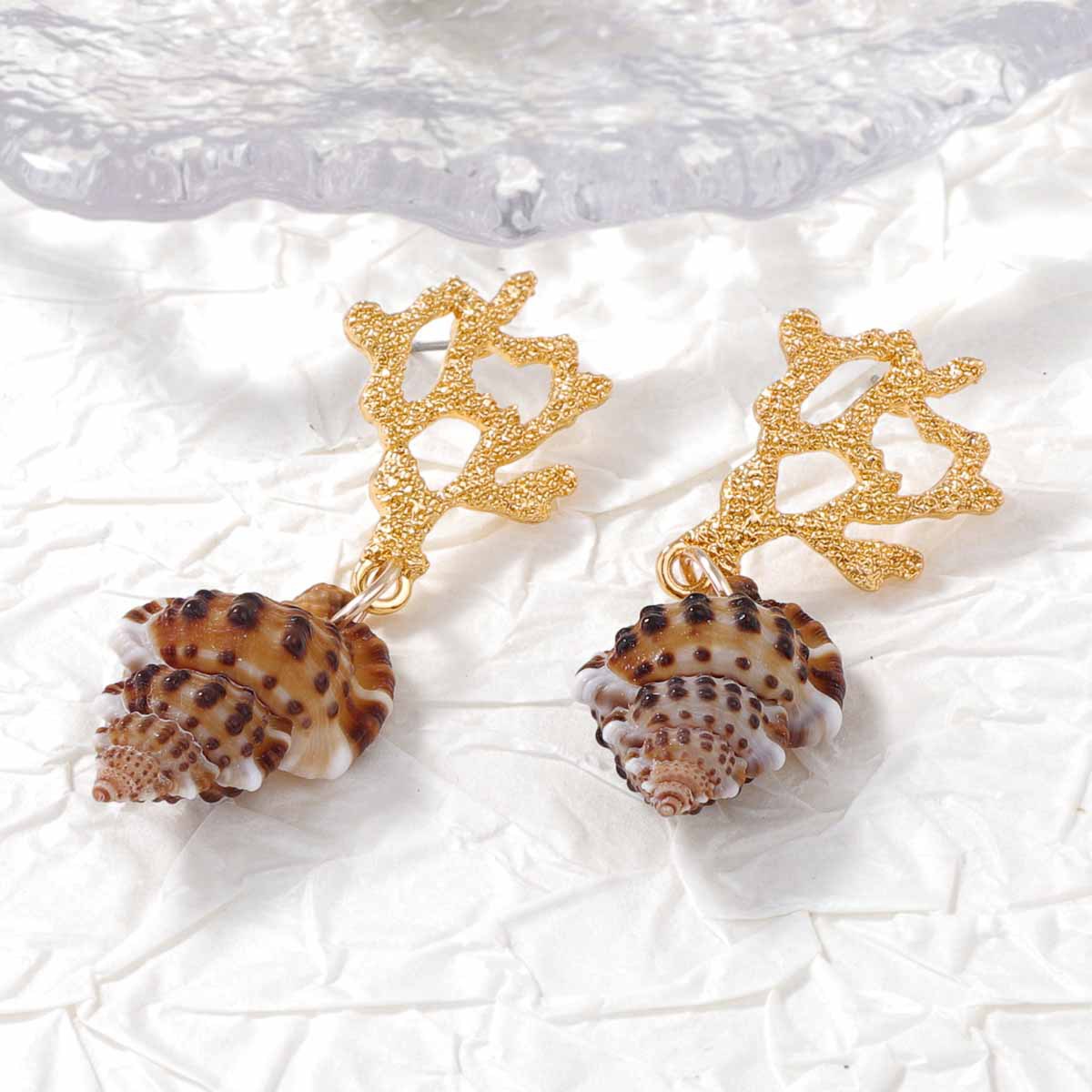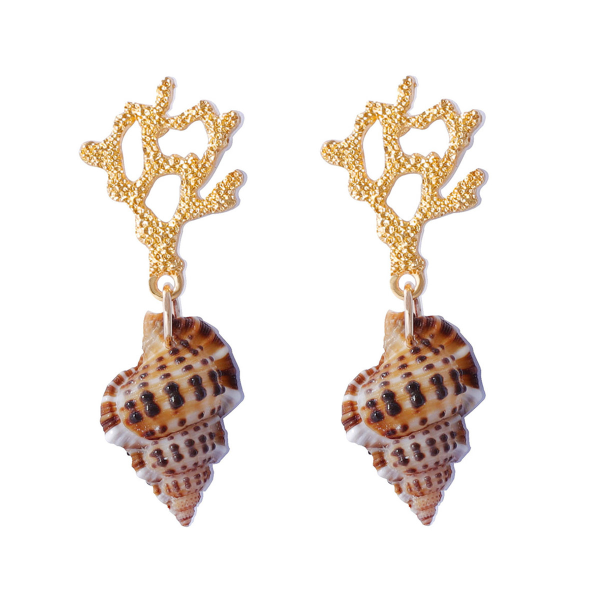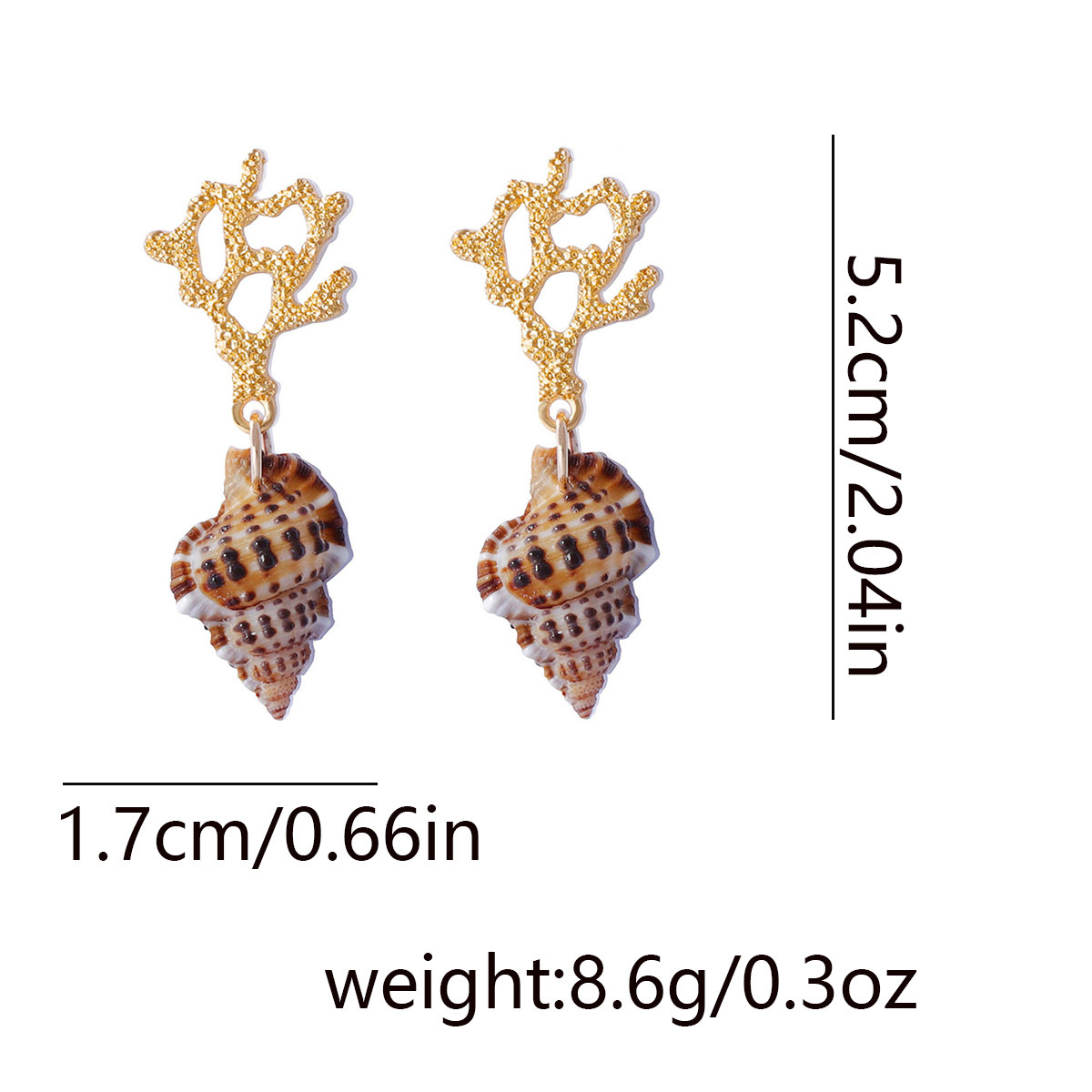 Zinc Alloy Drop Earring, with Shell, gold color plated, fashion jewelry, golden, Sold By Pair