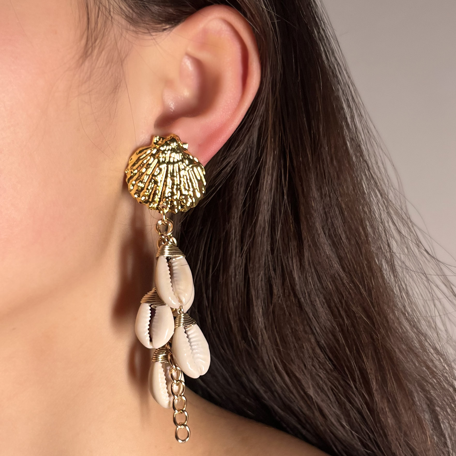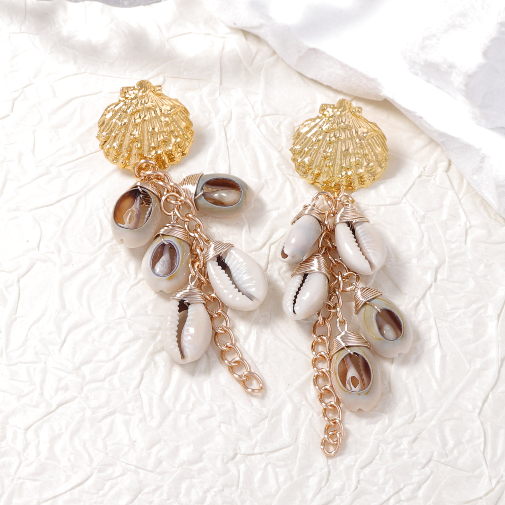 Zinc Alloy Drop Earring, with Shell, gold color plated, fashion jewelry, mixed colors, Sold By Pair