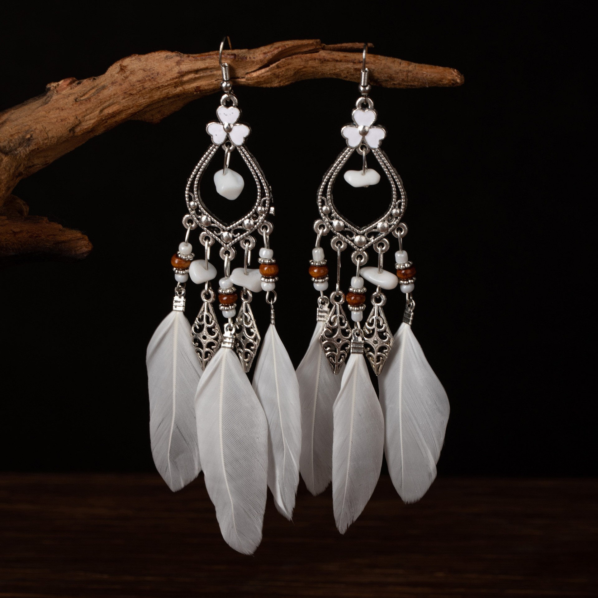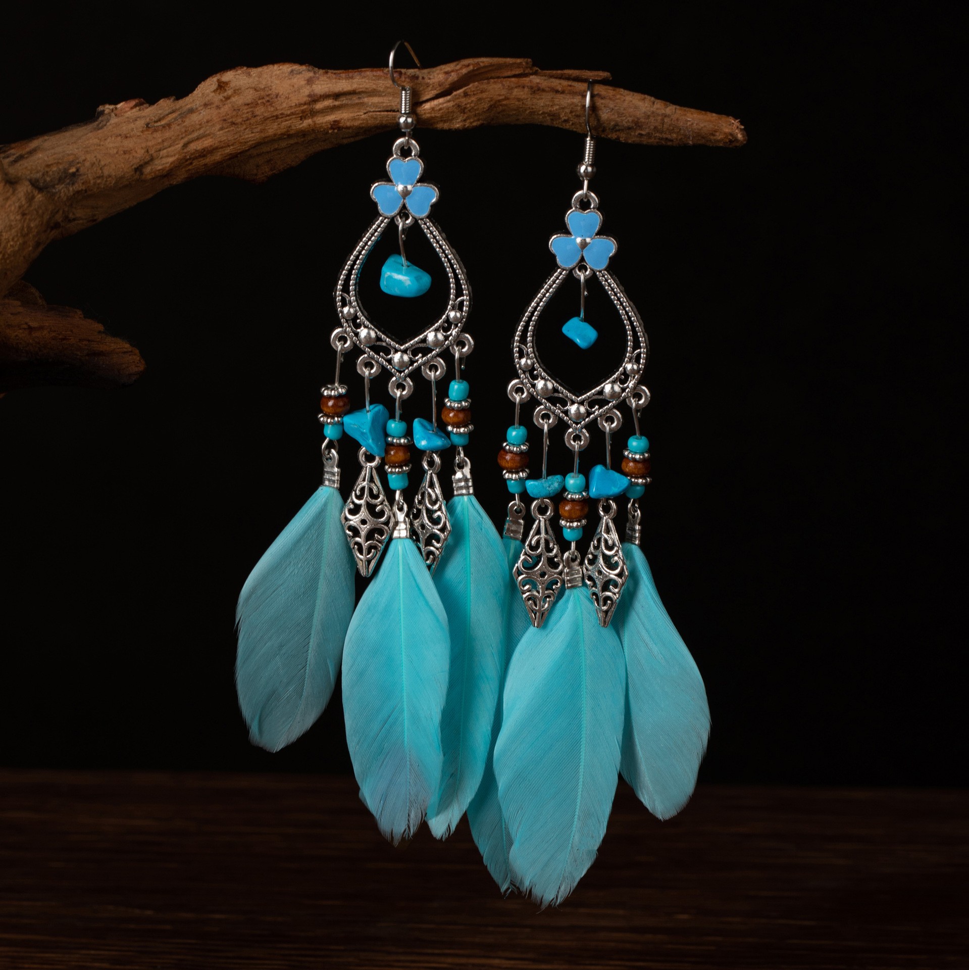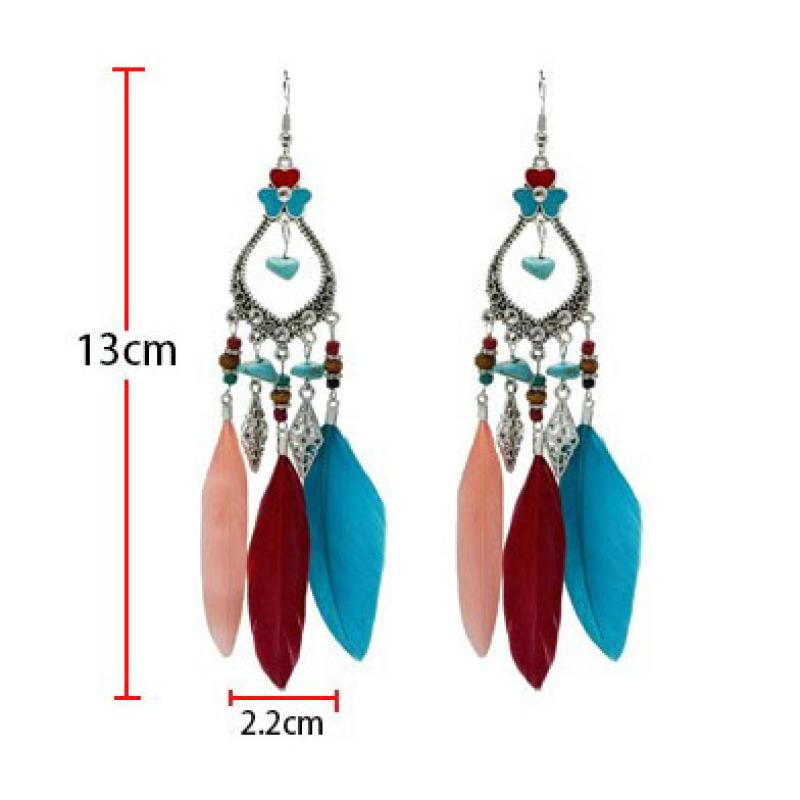 Zinc Alloy Drop Earring, with turquoise & Feather, plated, fashion jewelry & for woman & hollow, more colors for choice, Sold By PC