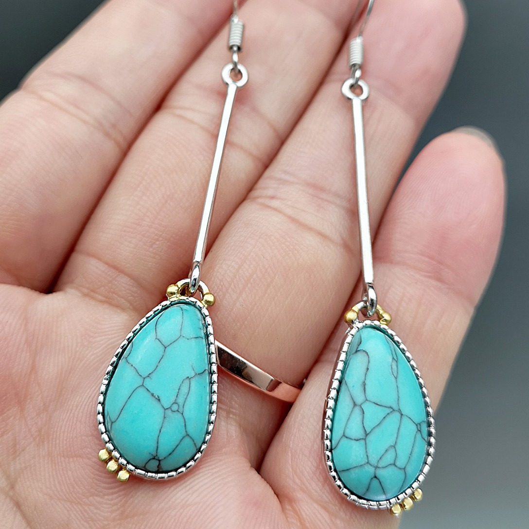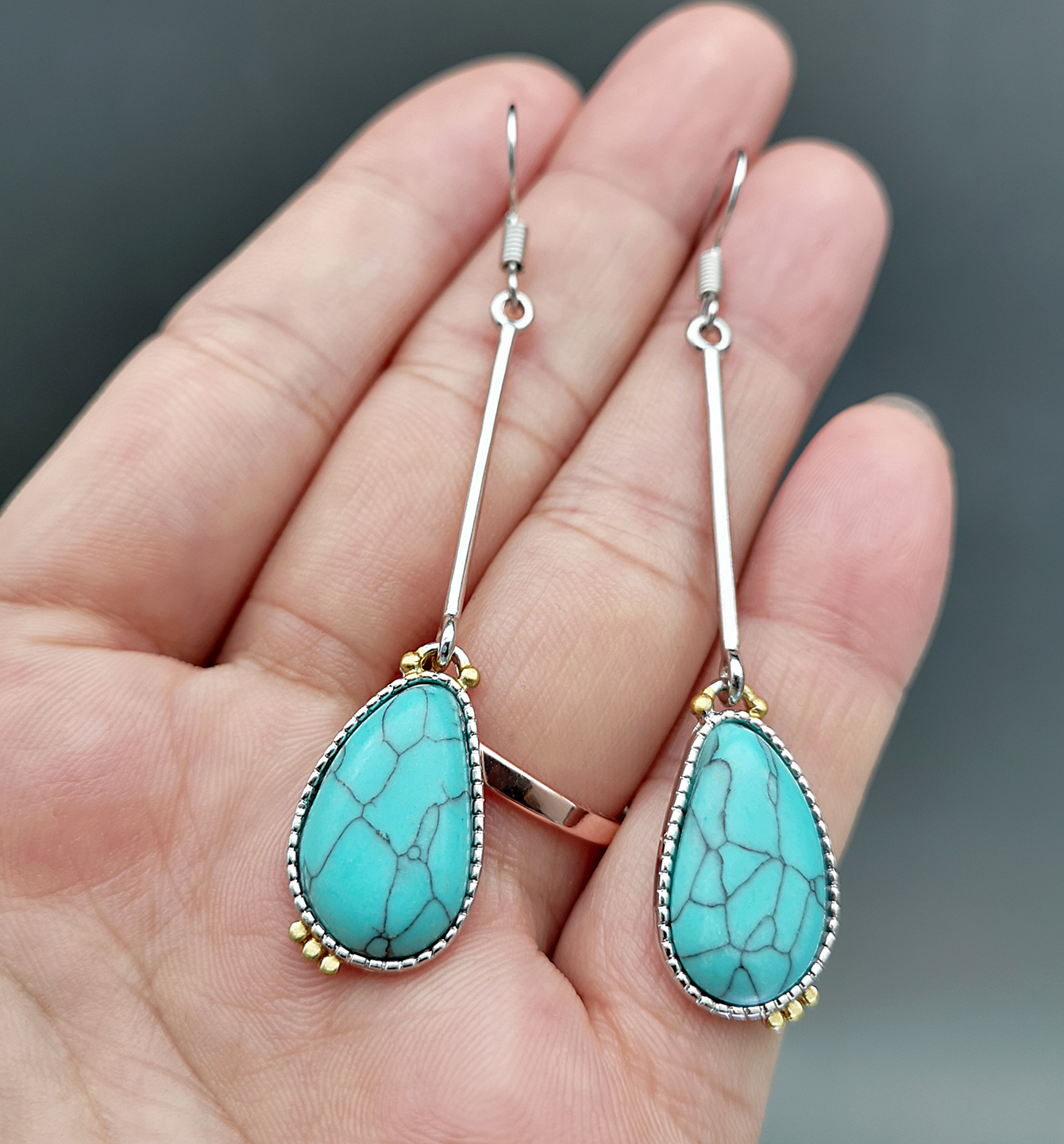 Zinc Alloy Drop Earring, with turquoise, Teardrop, plated, vintage & for woman, 14x69mm, Sold By Pair