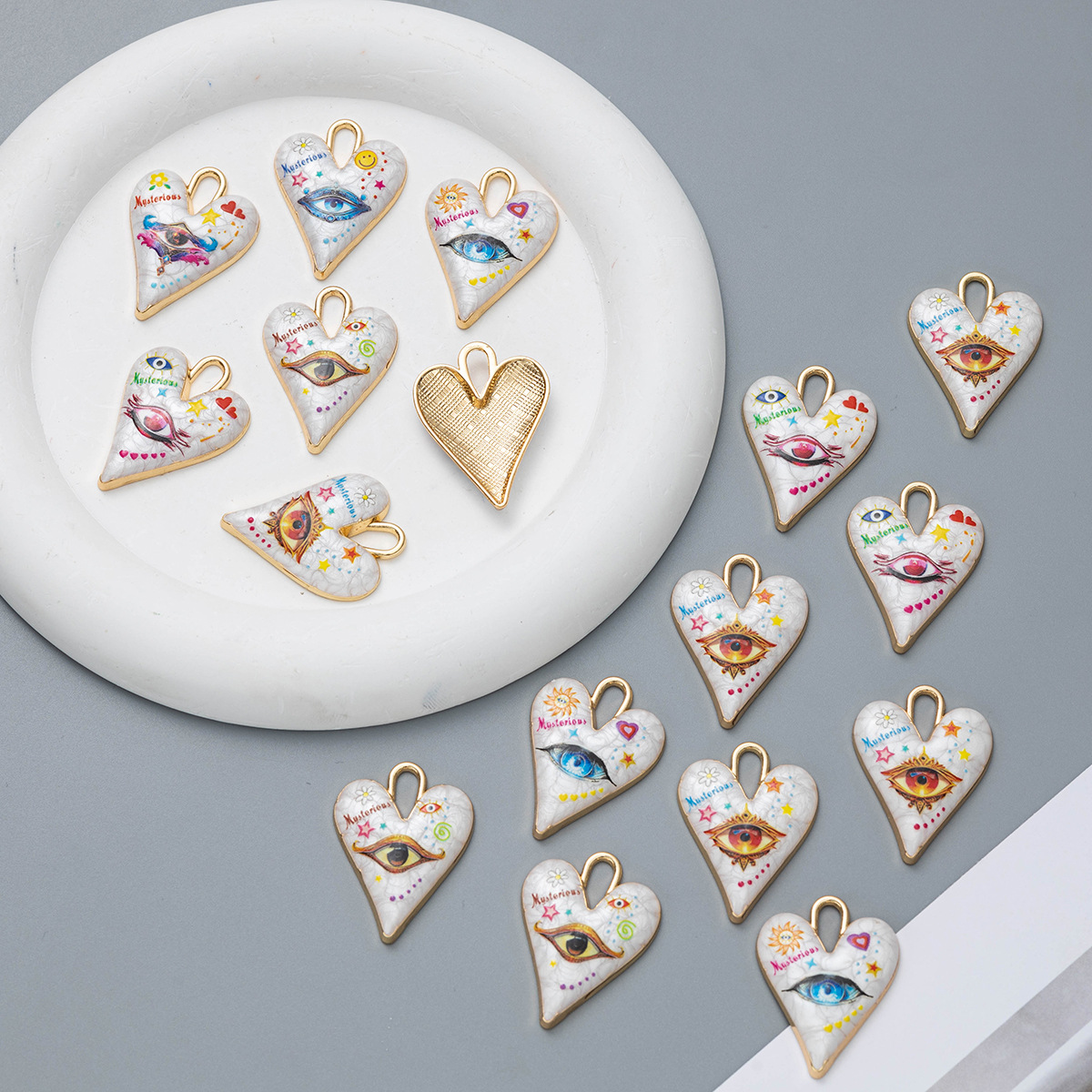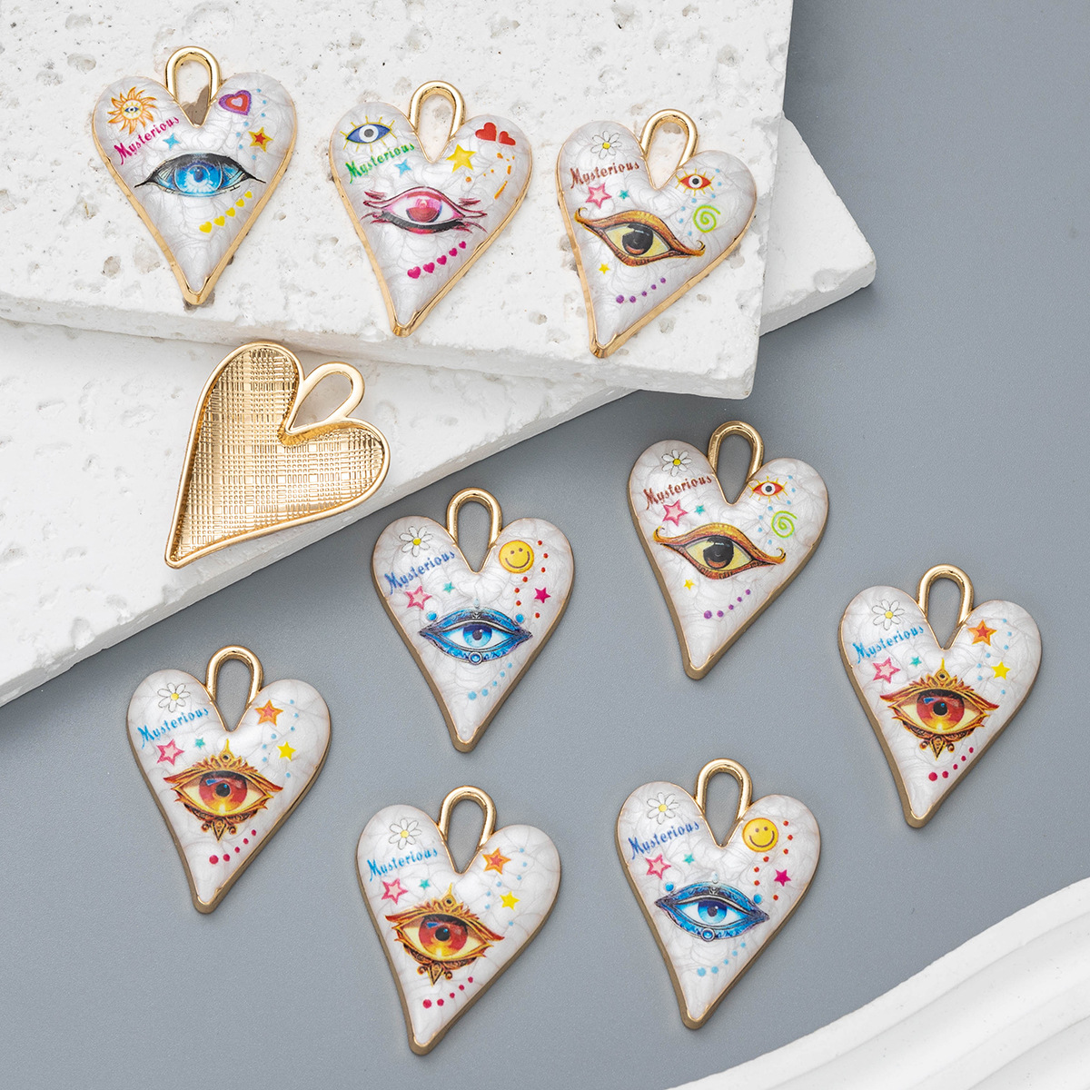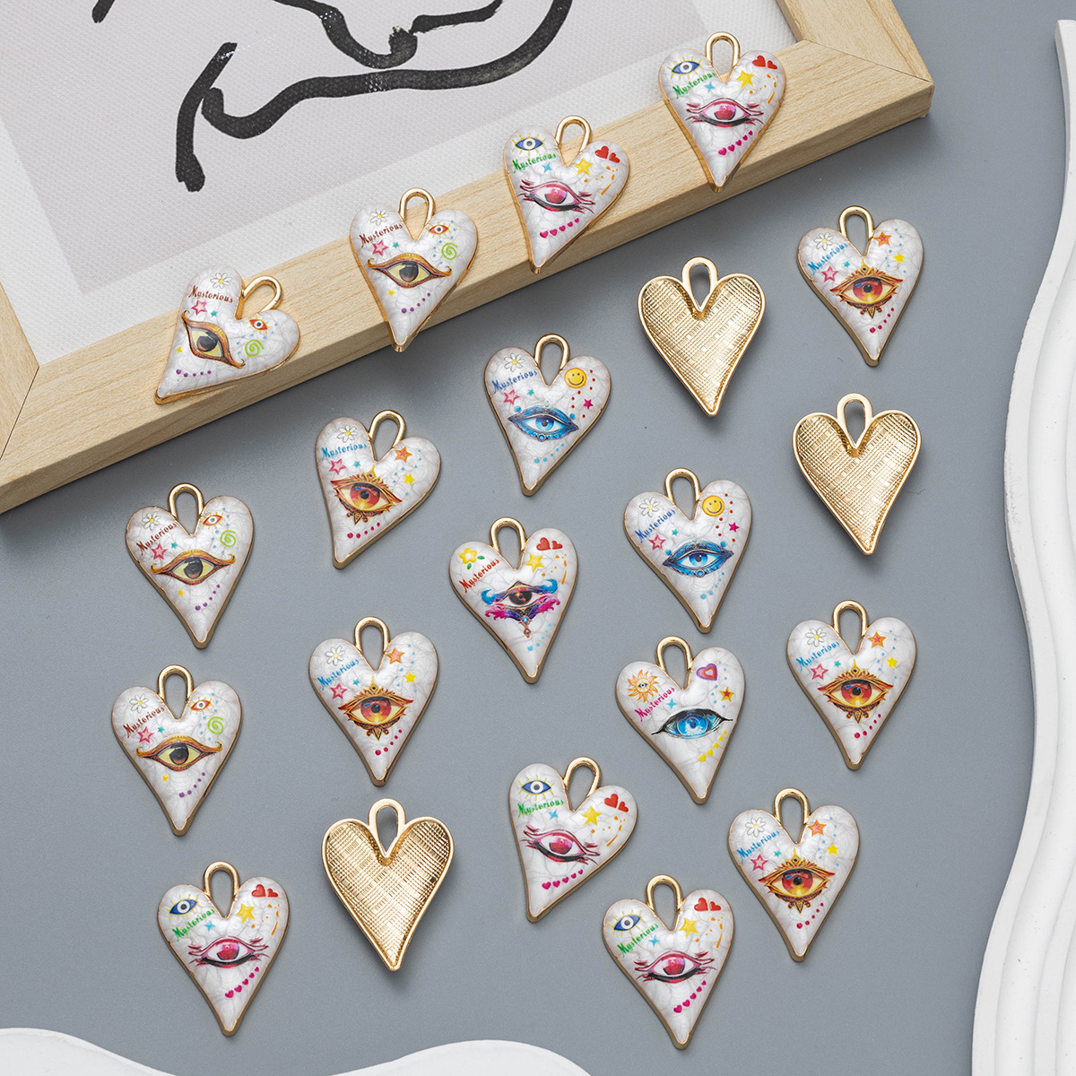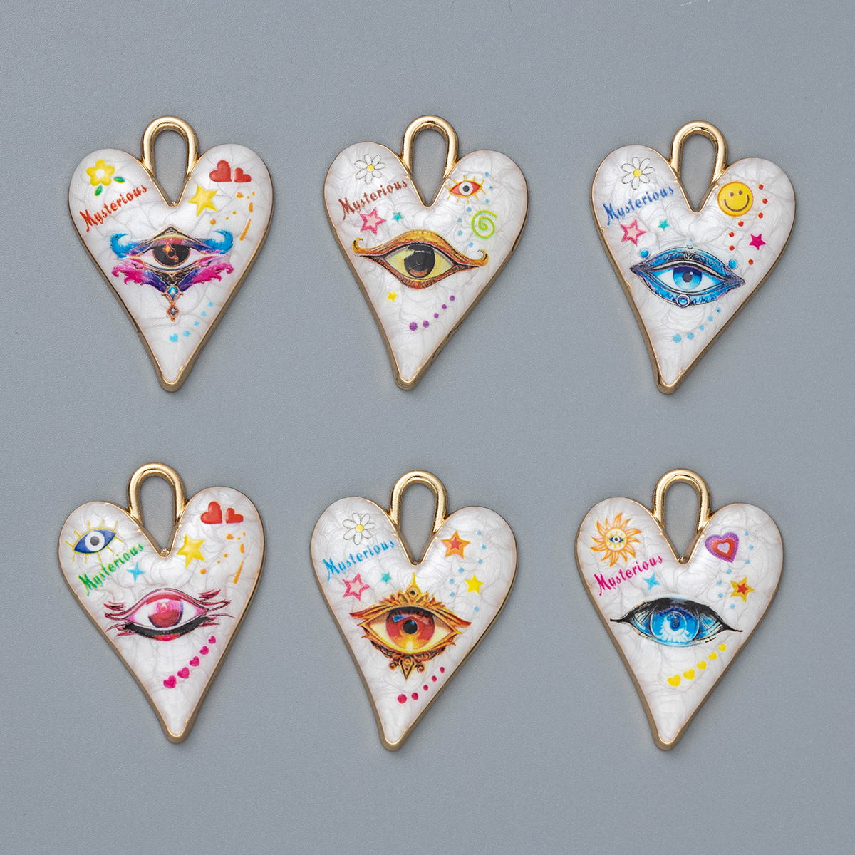Zinc Alloy Enamel Pendants, Heart, gold color plated, DIY & different designs for choice, 6PCs/Bag, Sold By Bag