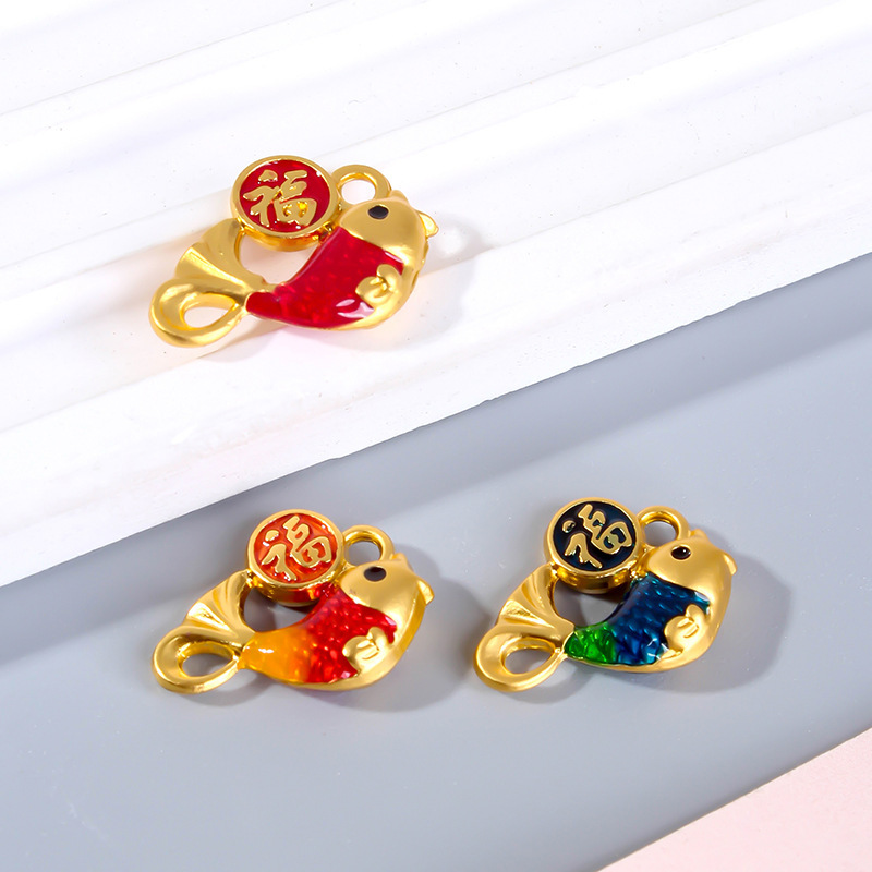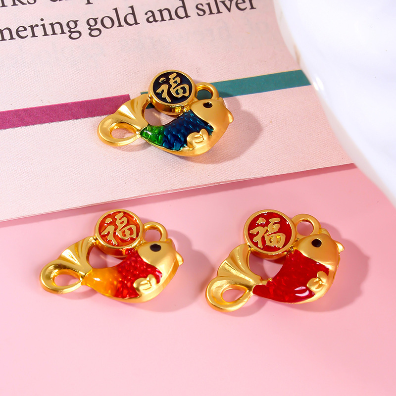 Zinc Alloy Enamel Pendants, Fish, gold color plated, DIY, more colors for choice, 17x12mm, Sold By PC