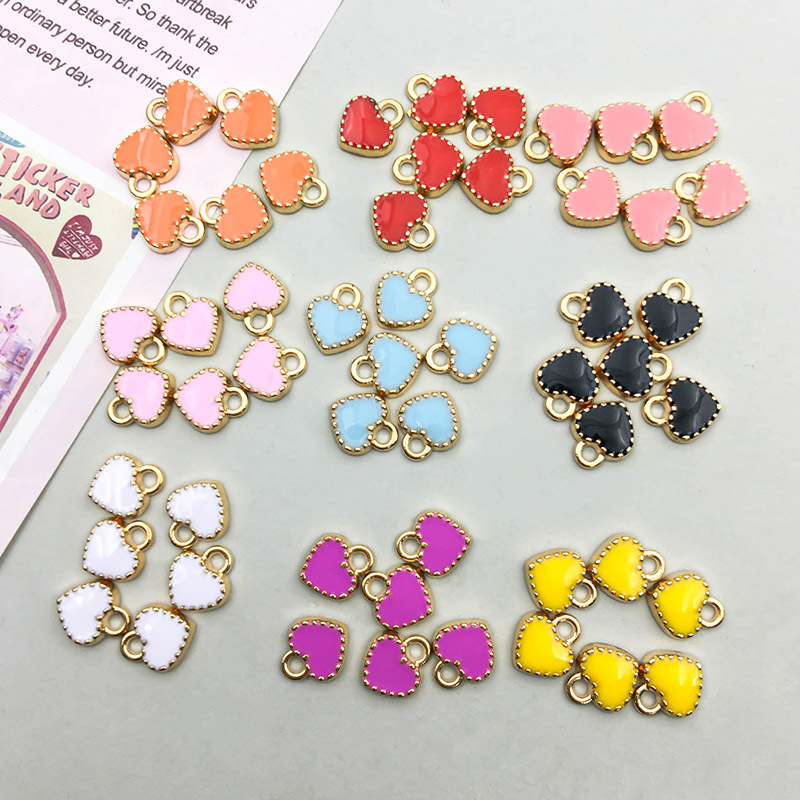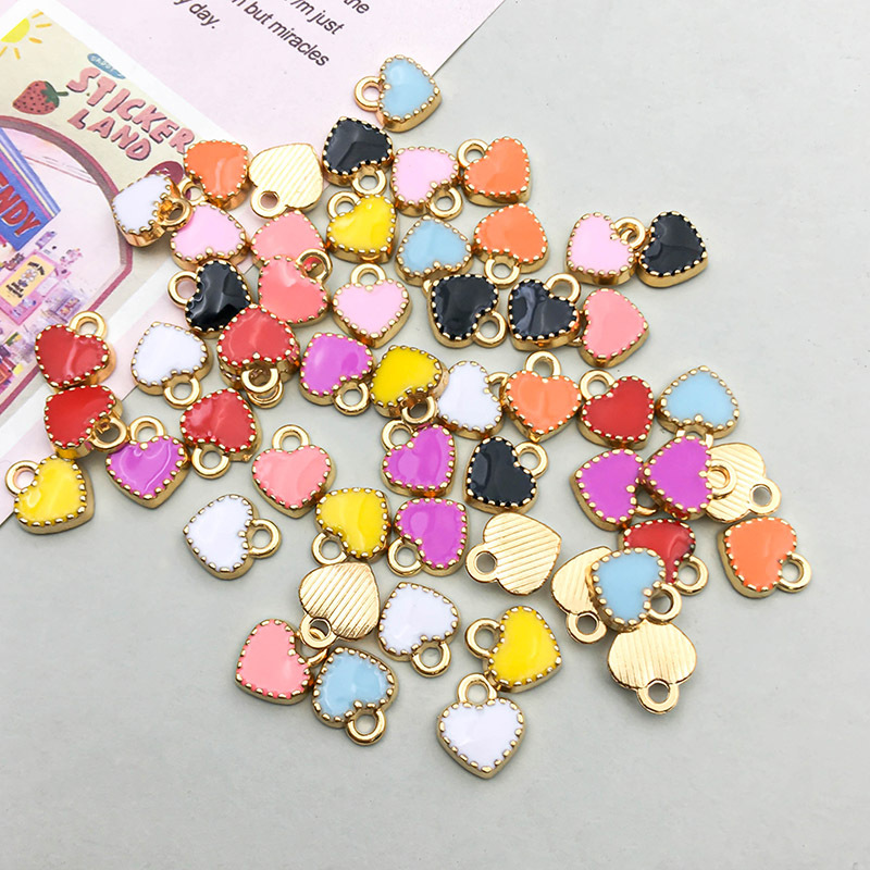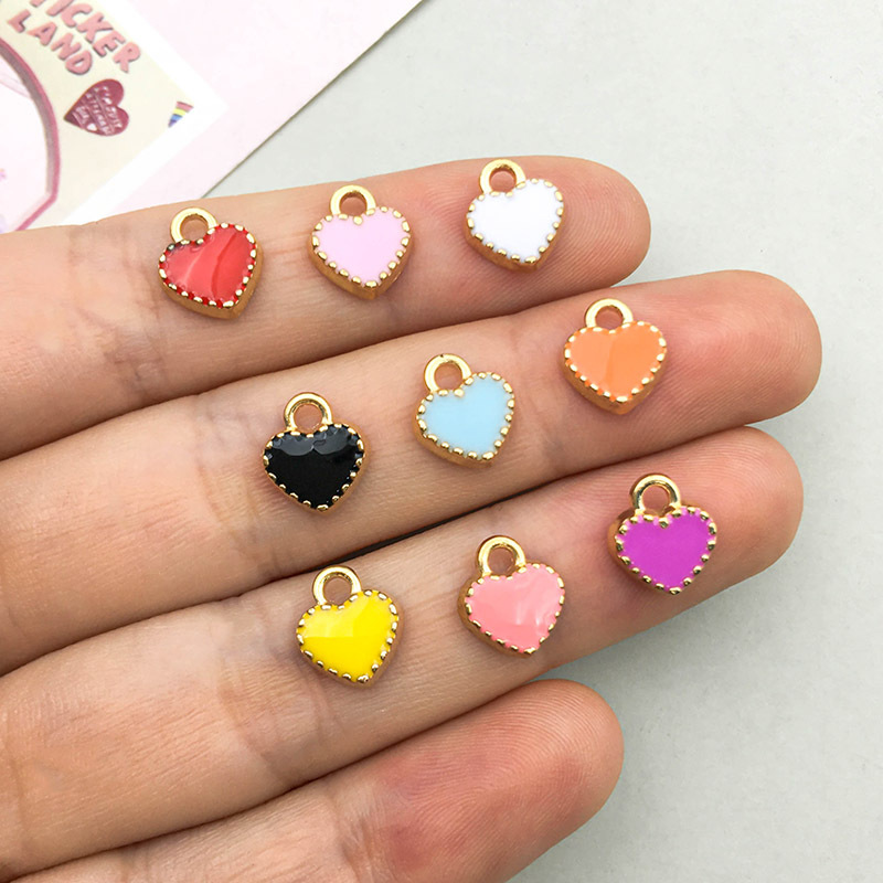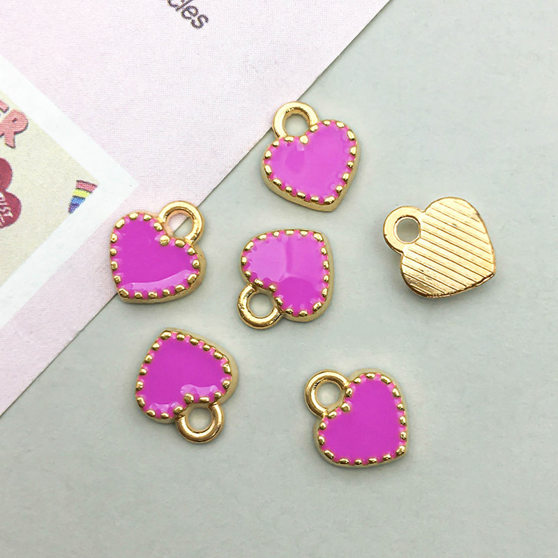 Zinc Alloy Enamel Pendants, Heart, gold color plated, DIY, more colors for choice, 8x9mm, 100PCs/Bag, Sold By Bag