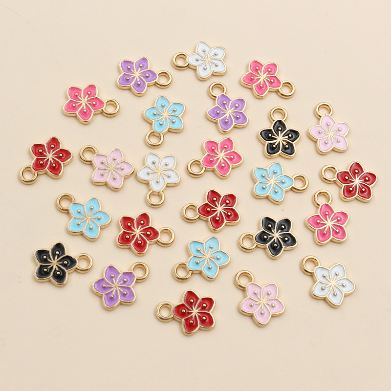 Zinc Alloy Enamel Pendants, Flower, gold color plated, DIY, more colors for choice, 11x9mm, Approx 100PCs/Bag, Sold By Bag