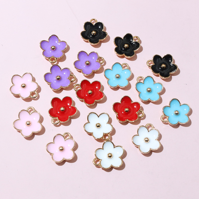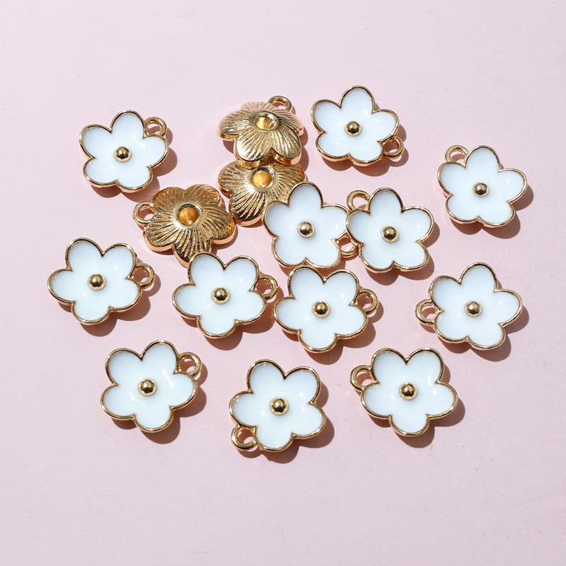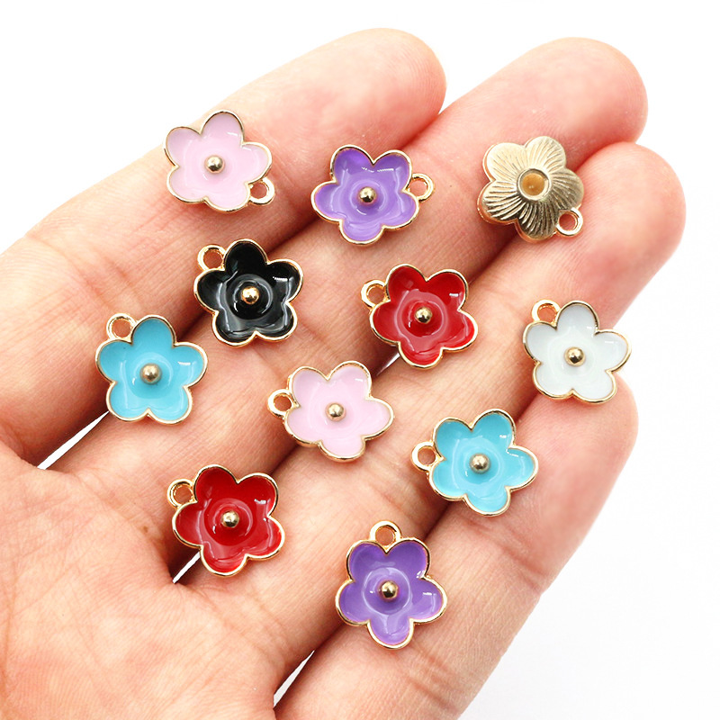 Zinc Alloy Enamel Pendants, Flower, gold color plated, DIY, more colors for choice, 13x11.5mm, 100PCs/Bag, Sold By Bag