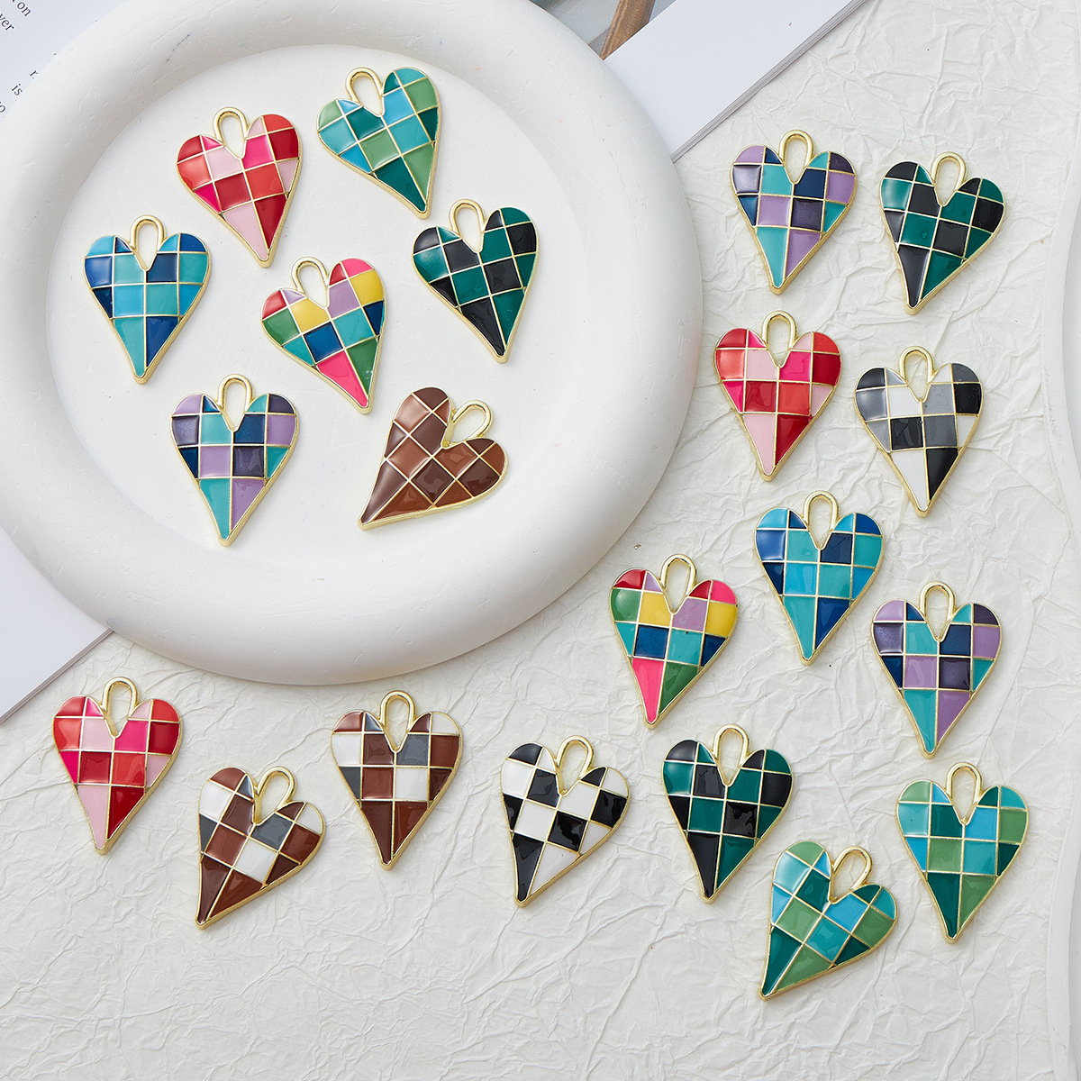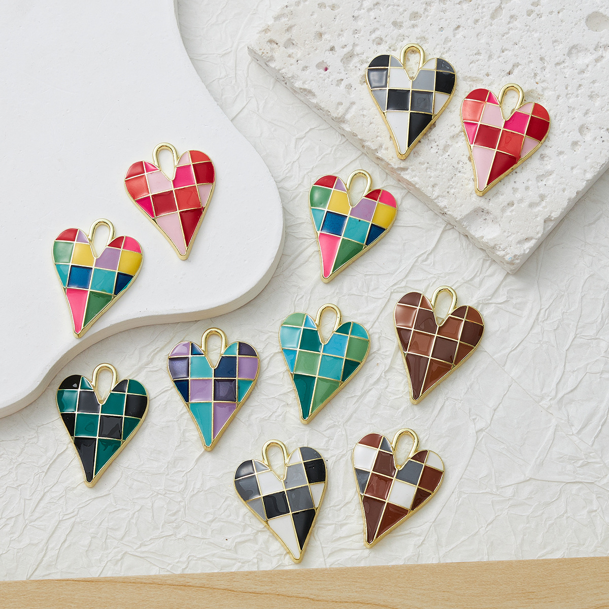 Zinc Alloy Enamel Pendants, Heart, gold color plated, DIY, more colors for choice, 4PCs/Bag, Sold By Bag