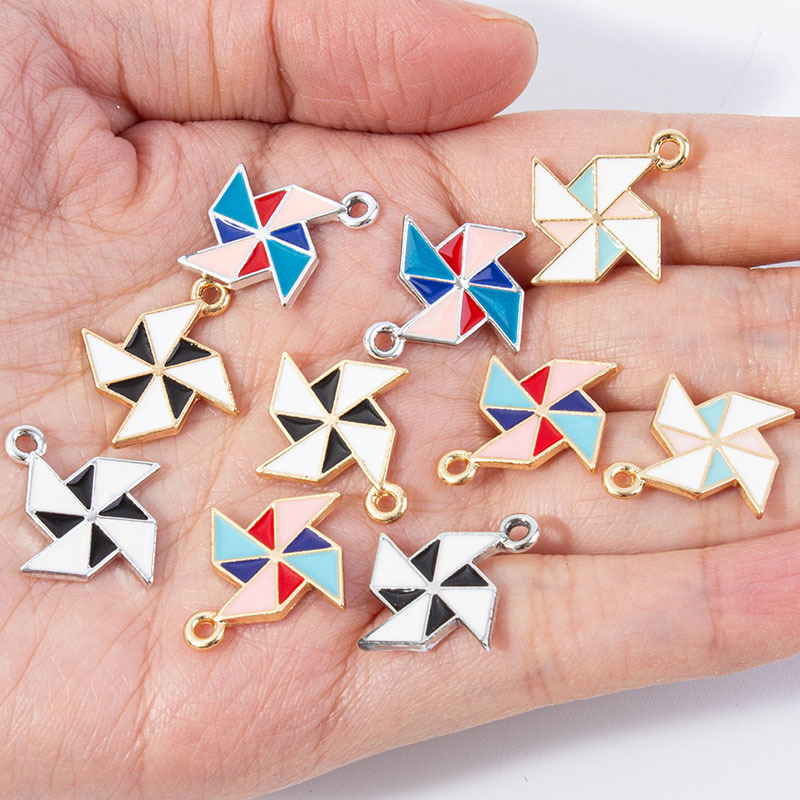 Zinc Alloy Enamel Pendants, Pinwheel, plated, DIY, more colors for choice, 10PCs/Bag, Sold By Bag