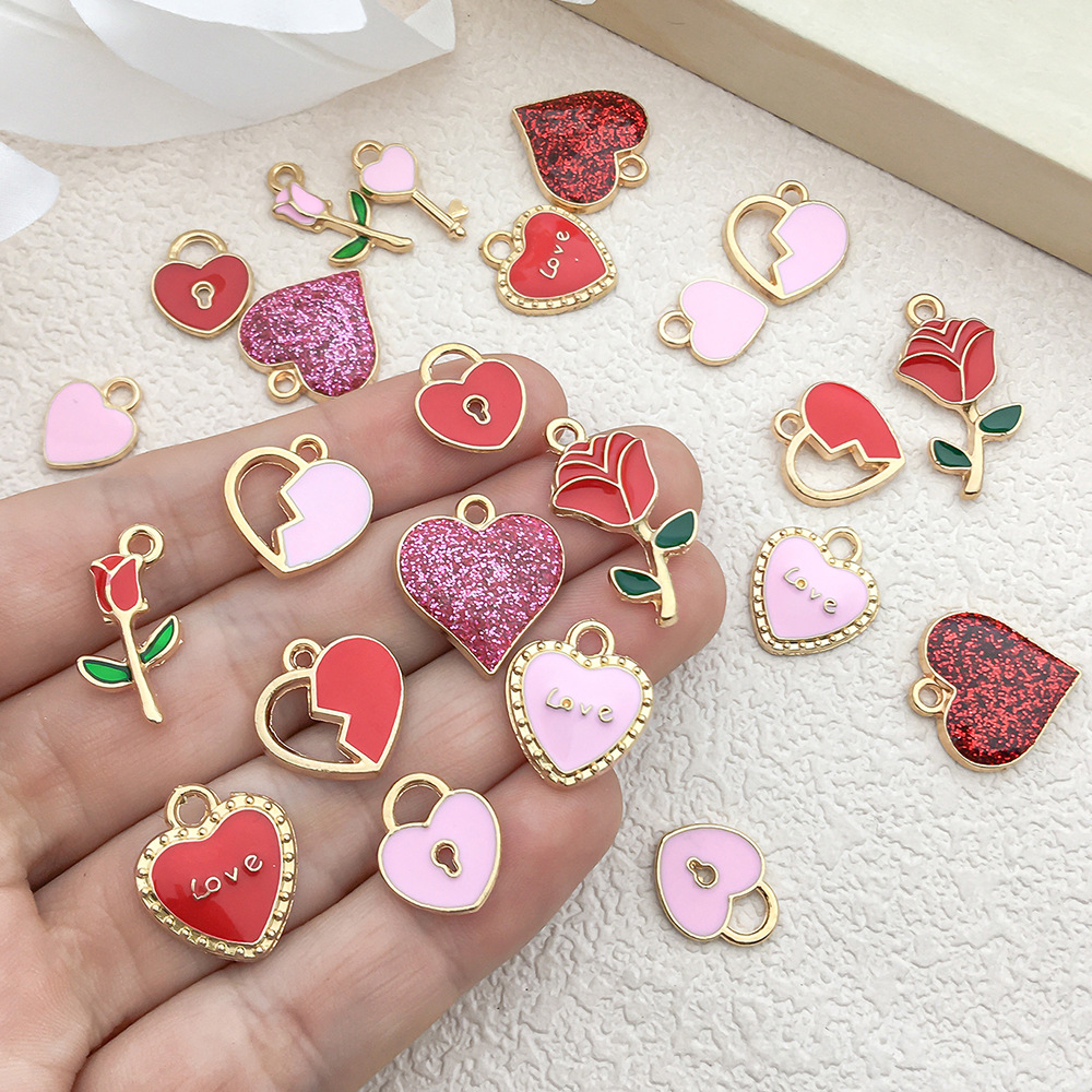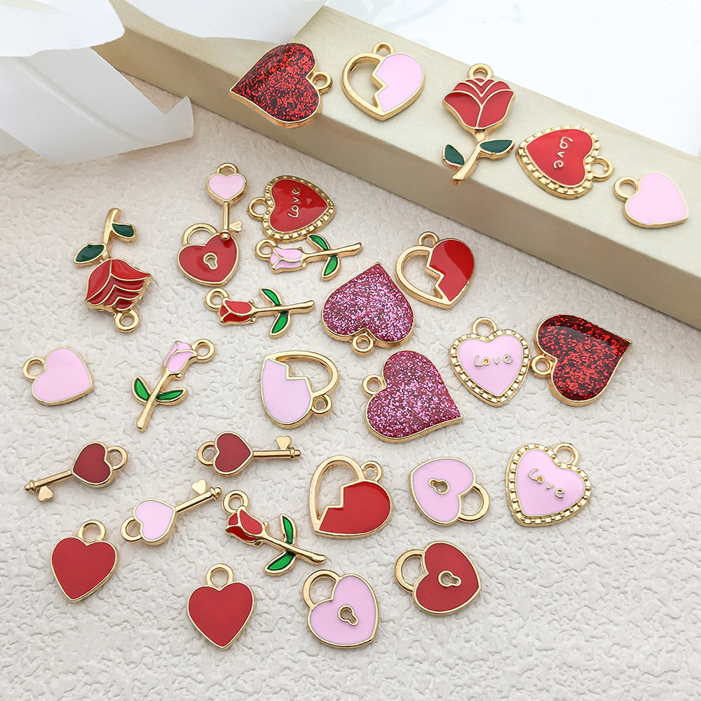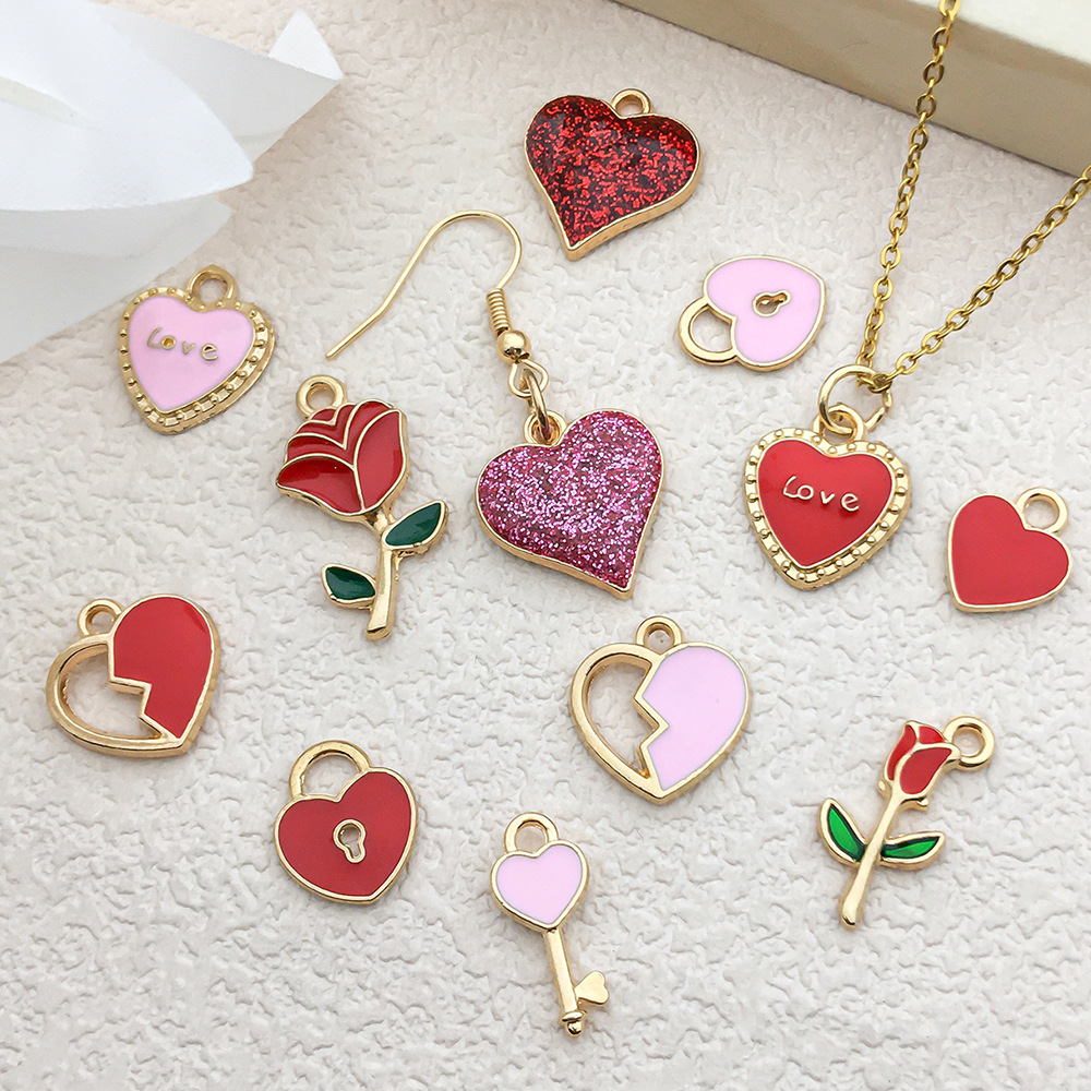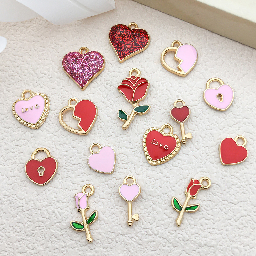 1 red peach heart-shaped key 7x16mm-0.6g-17525