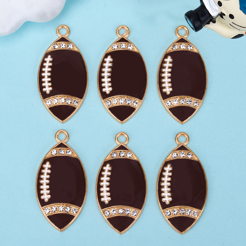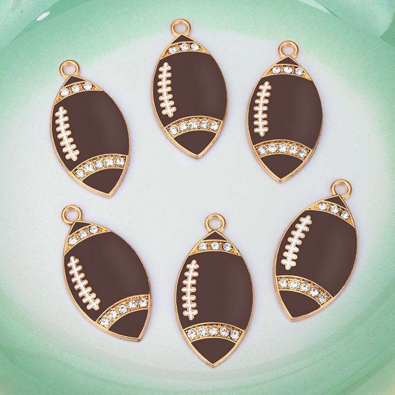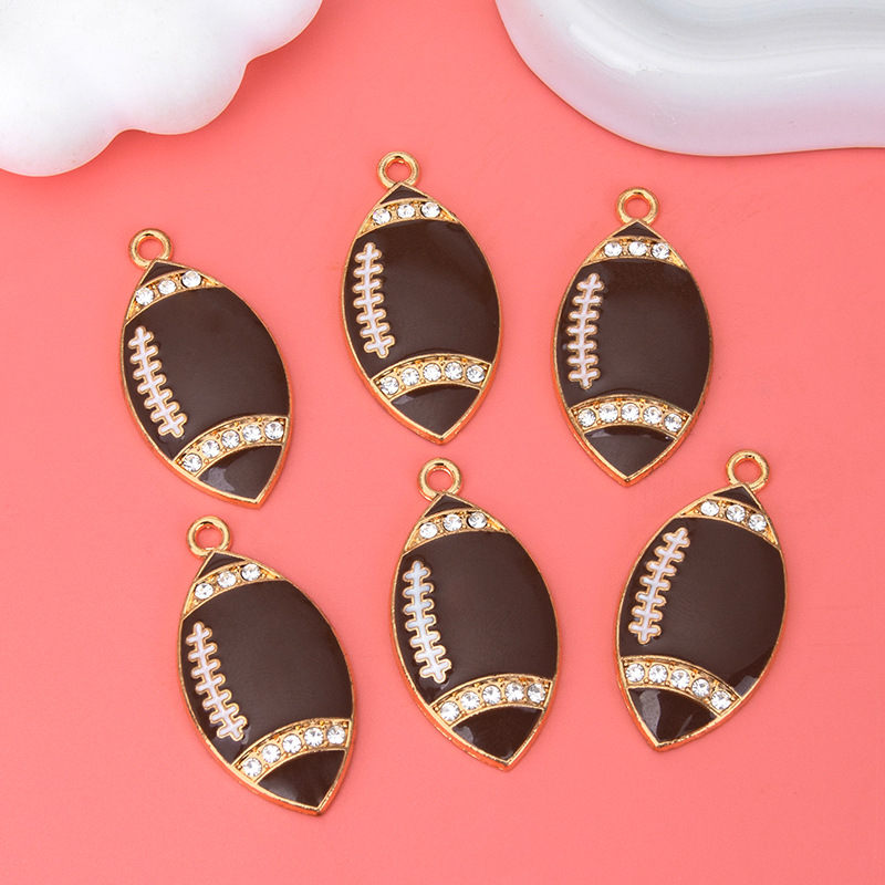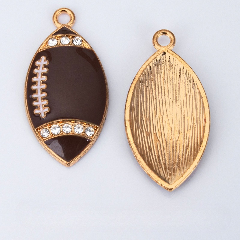 Zinc Alloy Enamel Pendants, Rugby Ball, gold color plated, DIY & with rhinestone, dark brown, 18x35mm, Sold By PC