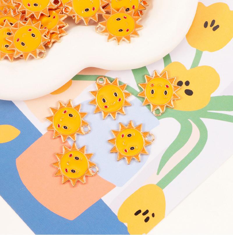 Zinc Alloy Enamel Pendants, Sun, gold color plated, DIY, mixed colors, 100PCs/Bag, Sold By Bag