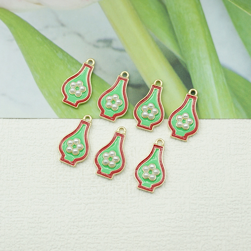 Zinc Alloy Enamel Pendants, with Plastic Pearl, plated, DIY, mixed colors, 100PCs/Bag, Sold By Bag