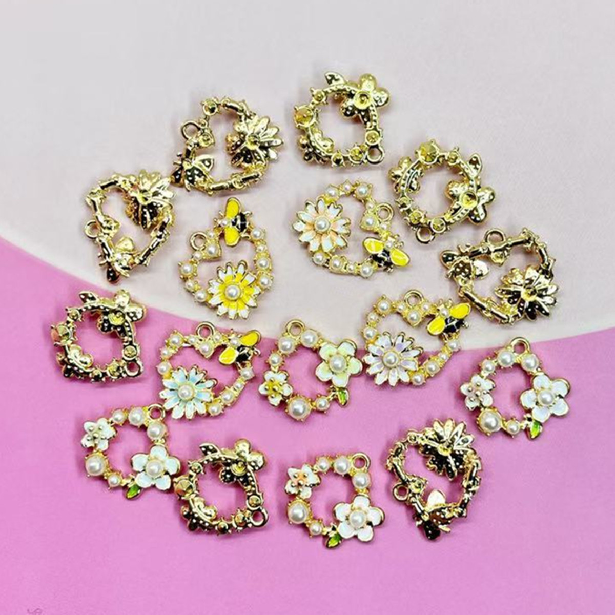 Zinc Alloy Enamel Pendants, with Plastic Pearl, gold color plated, DIY & different size for choice, more colors for choice, Approx 100PCs/Bag, Sold By Bag