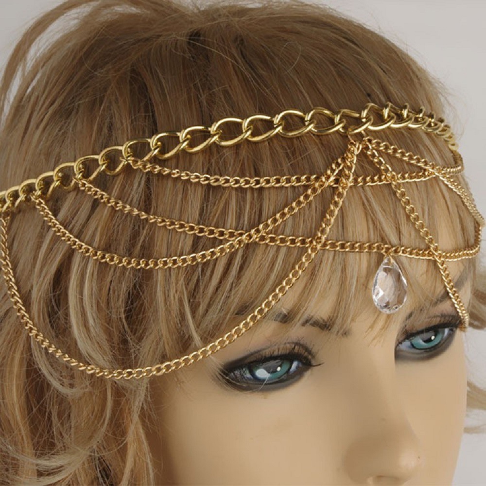 Zinc Alloy Head Chain, with Crystal, gold color plated, vintage & multilayer & for woman, Length:Approx 55 cm, Sold By PC