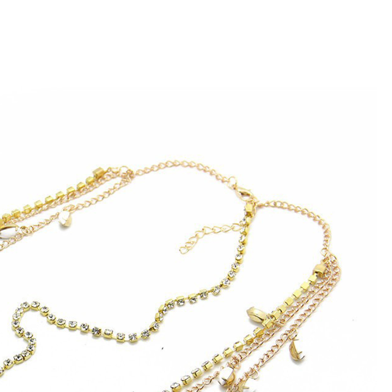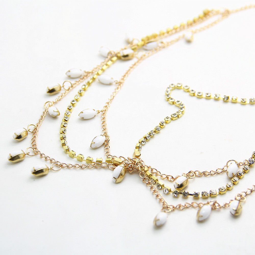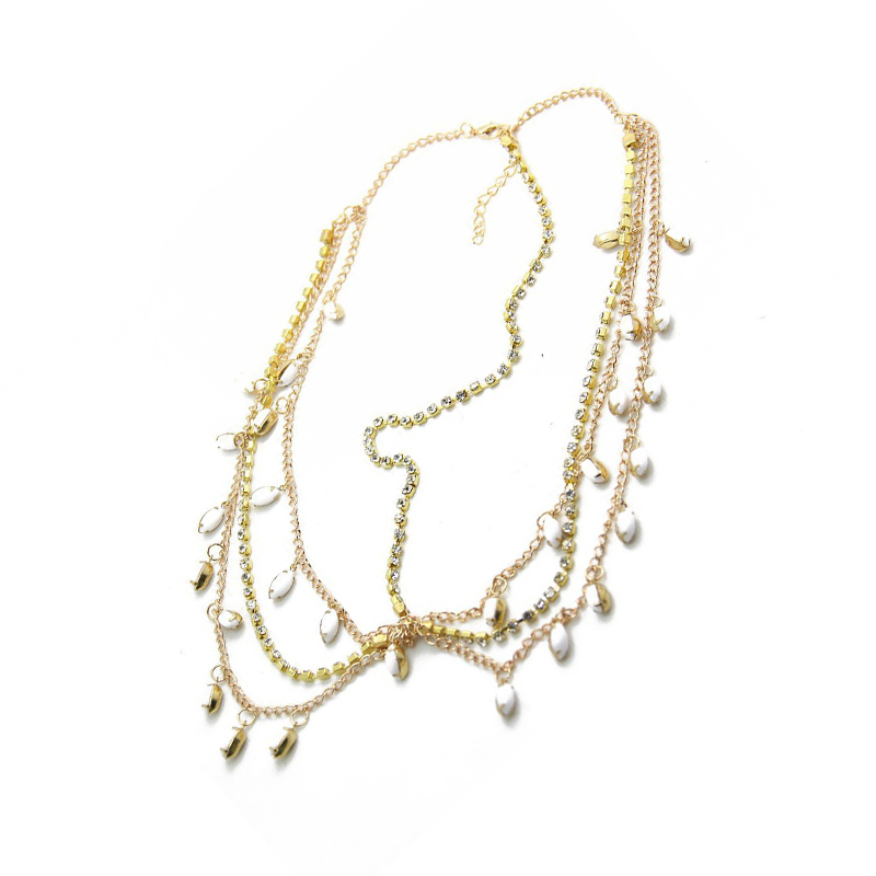 Zinc Alloy Head Chain, with Glass, gold color plated, multilayer & for woman & with rhinestone, Length:Approx 55 cm, Sold By PC