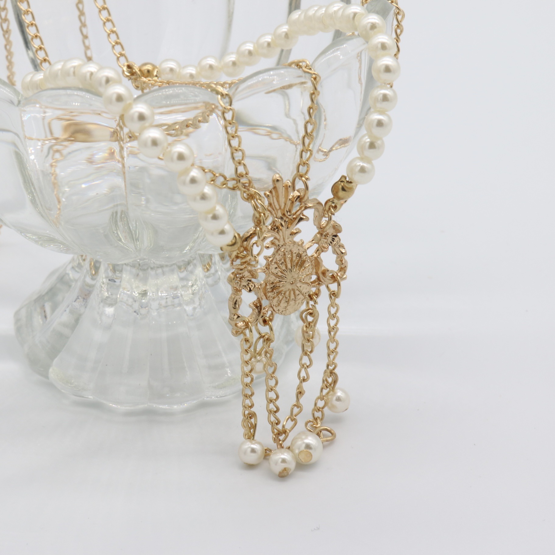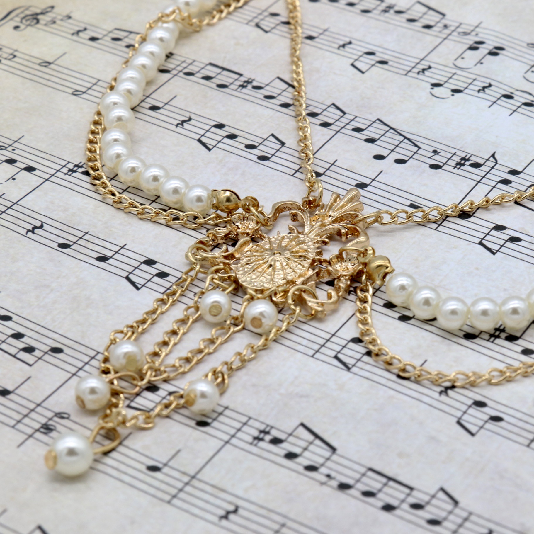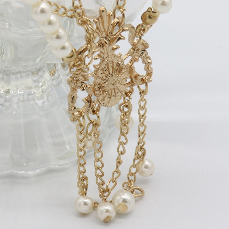 Zinc Alloy Head Chain, with Plastic Pearl, gold color plated, vintage & for woman, Length:Approx 55 cm, Sold By PC