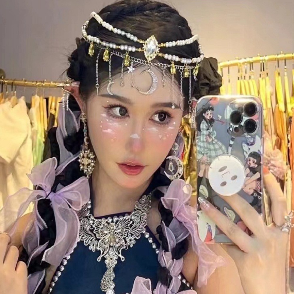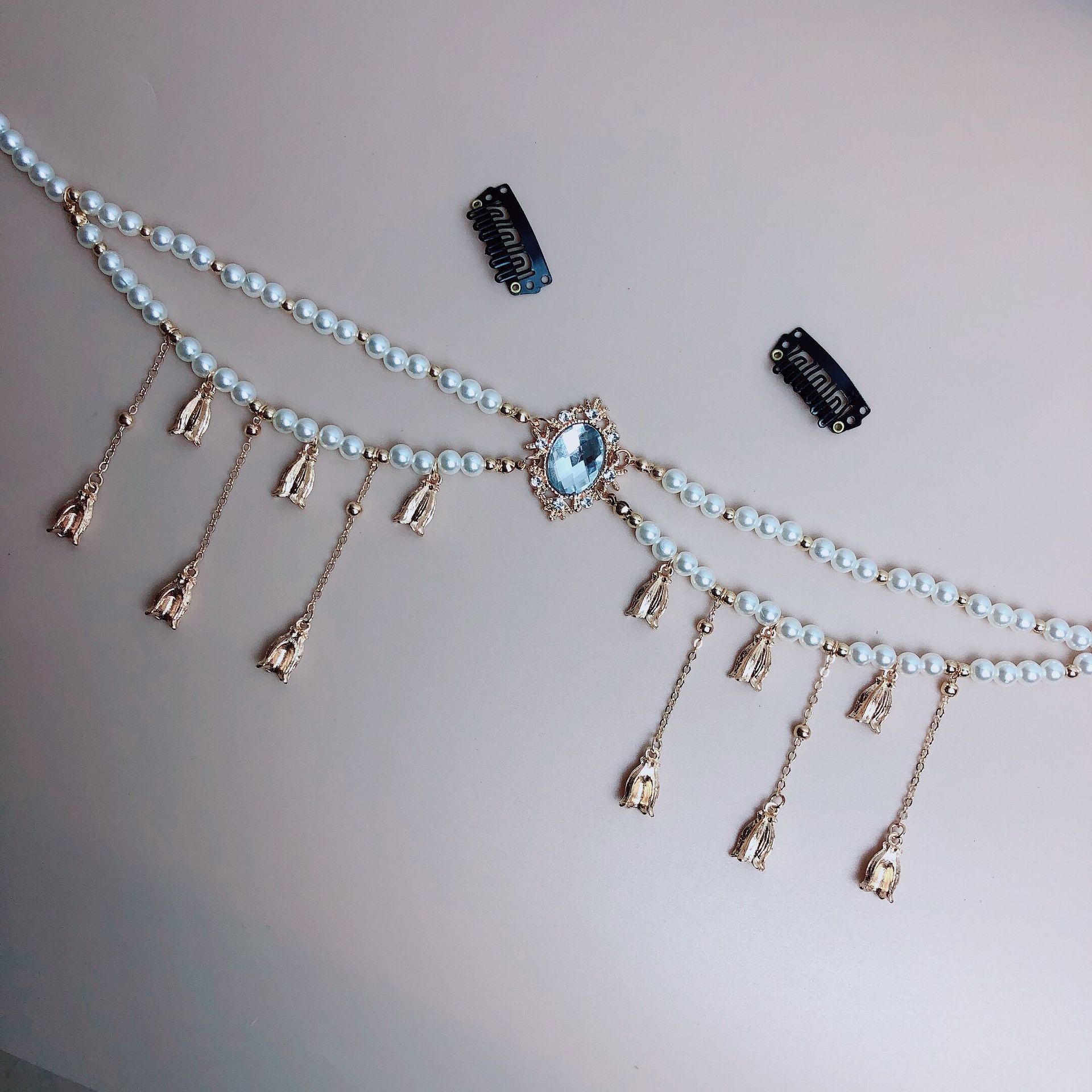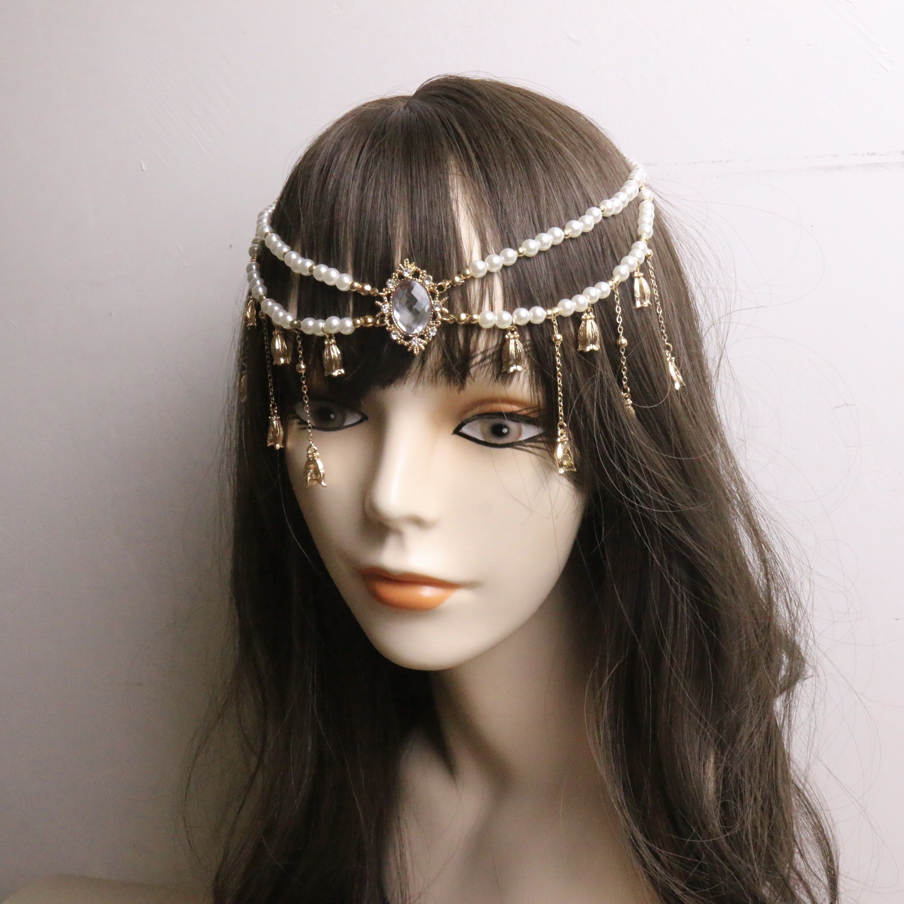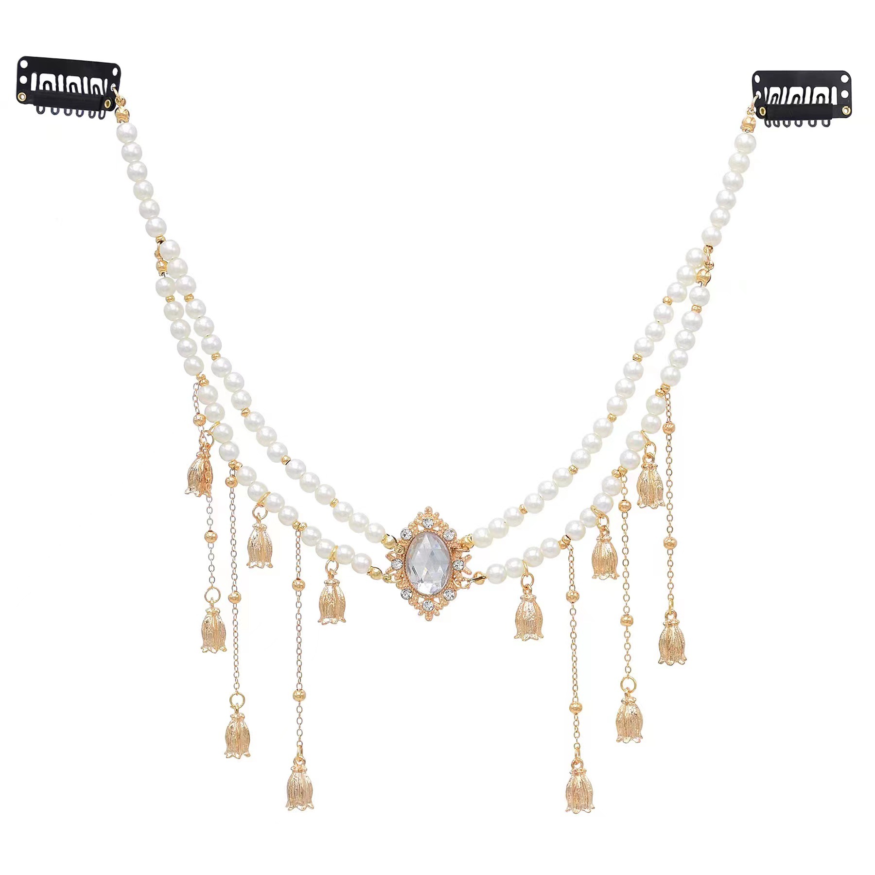 Zinc Alloy Head Chain, with Plastic Pearl, plated, folk style & for woman & with rhinestone, more colors for choice, Length:Approx 55 cm, Sold By PC