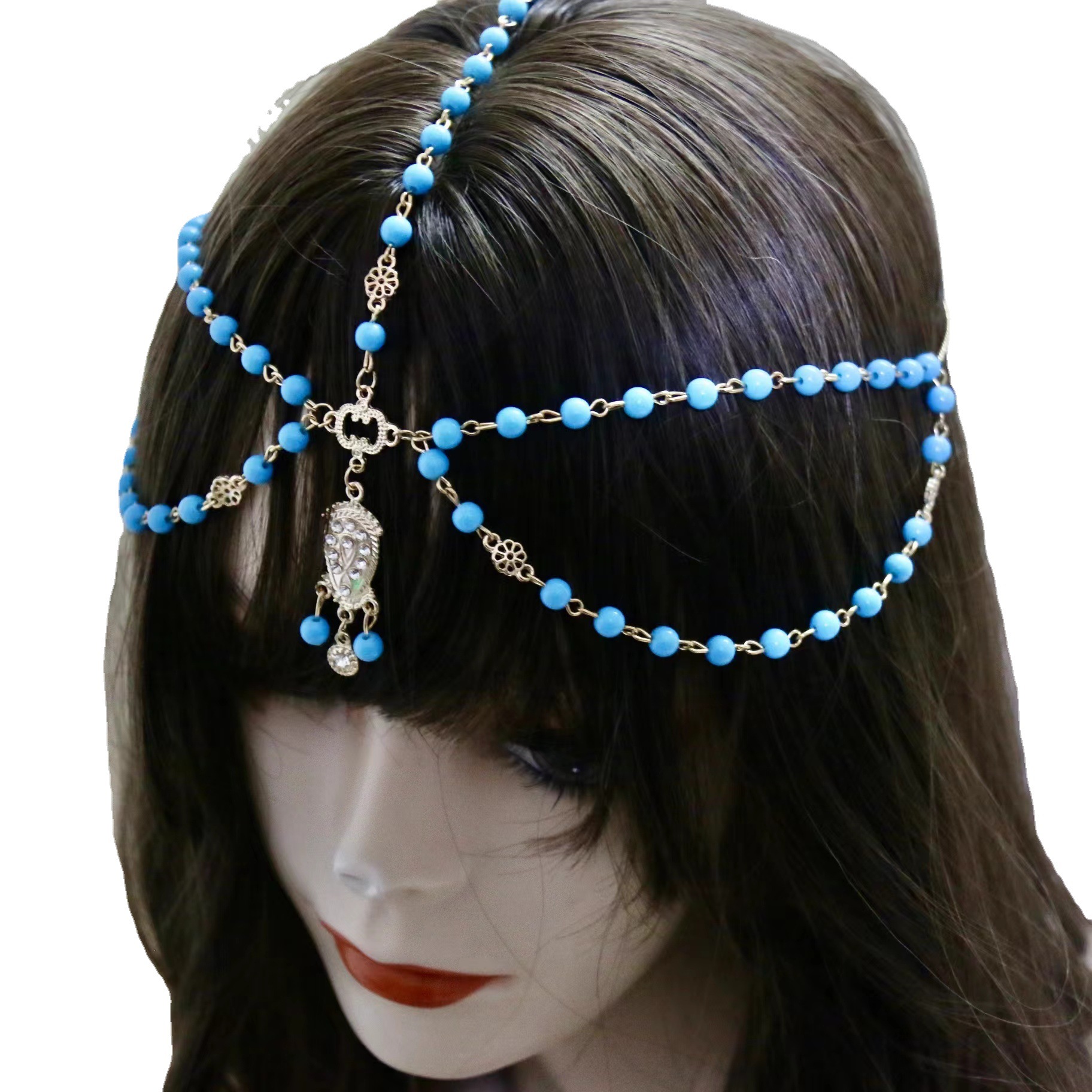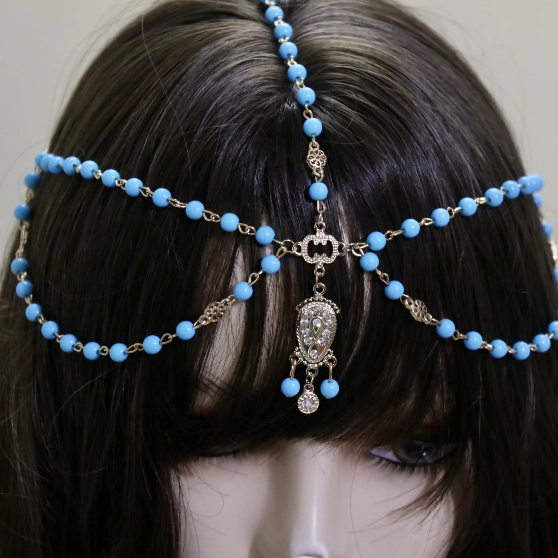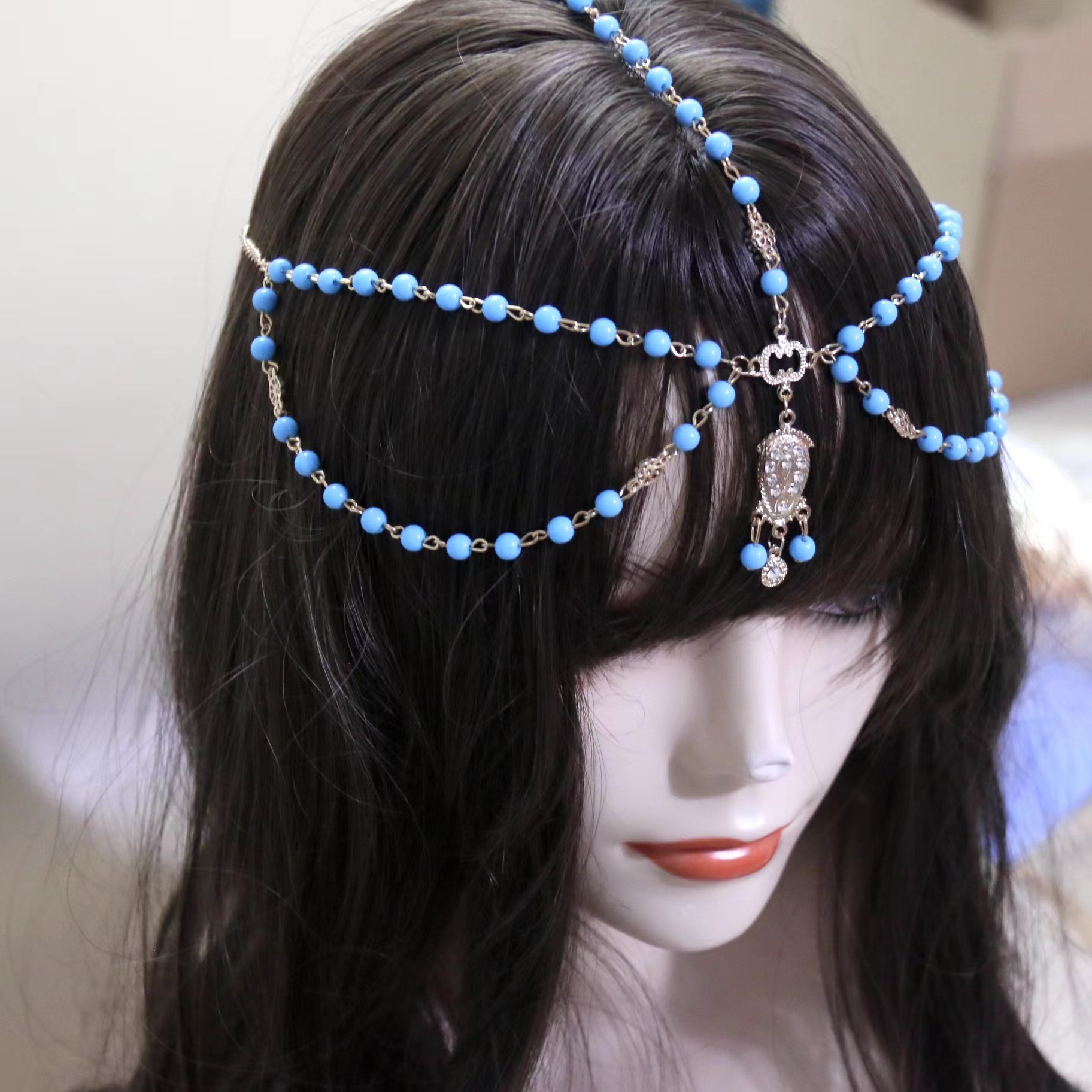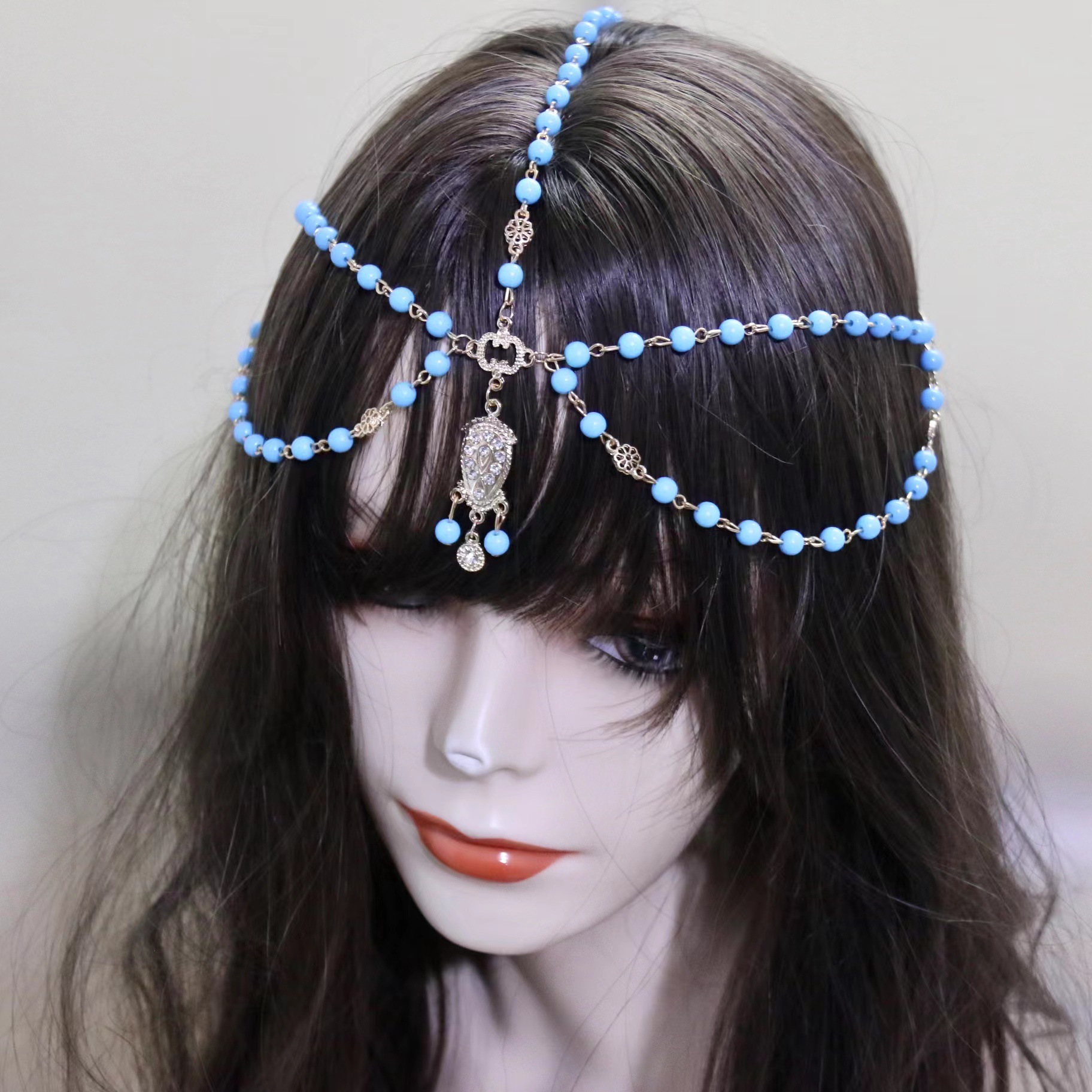 Zinc Alloy Head Chain, with Seedbead, plated, folk style & for woman, Length:Approx 55 cm, Sold By PC