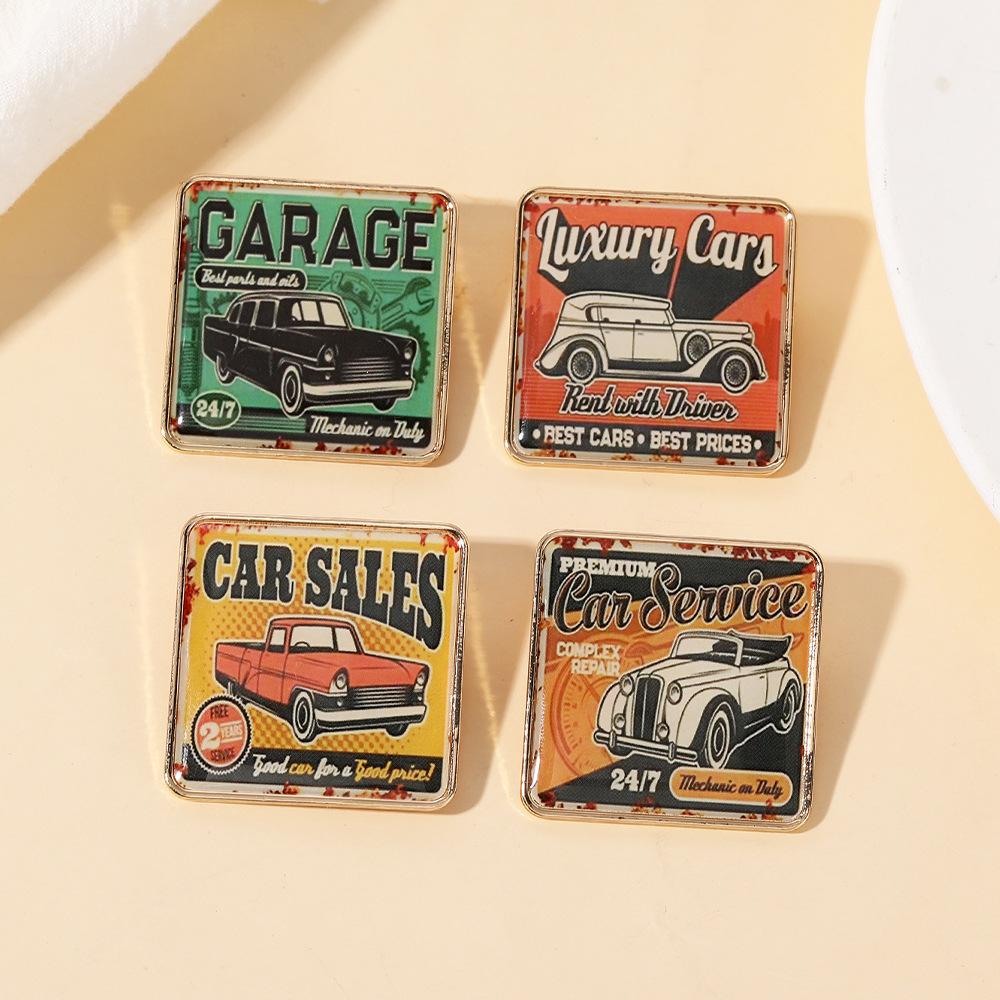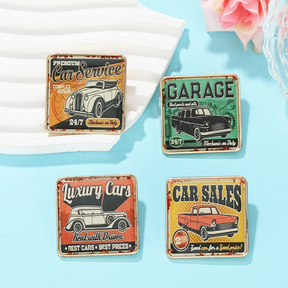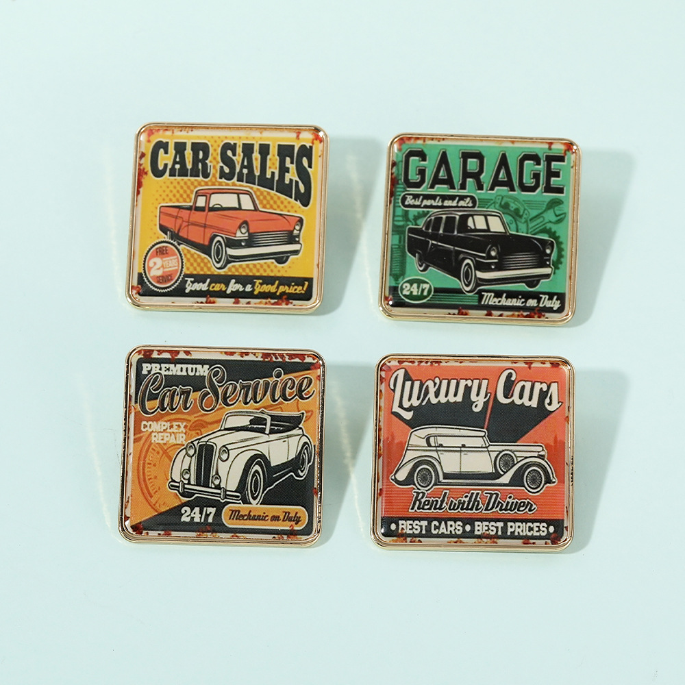 Zinc Alloy Jewelry Brooch, Square, epoxy gel, Unisex & different designs for choice, golden, Sold By PC