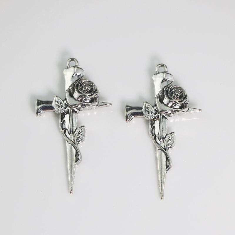 Zinc Alloy Jewelry Pendants, Cross, antique silver color plated, DIY, 31x55x7.5mm, Approx 100PCs/Bag, Sold By Bag