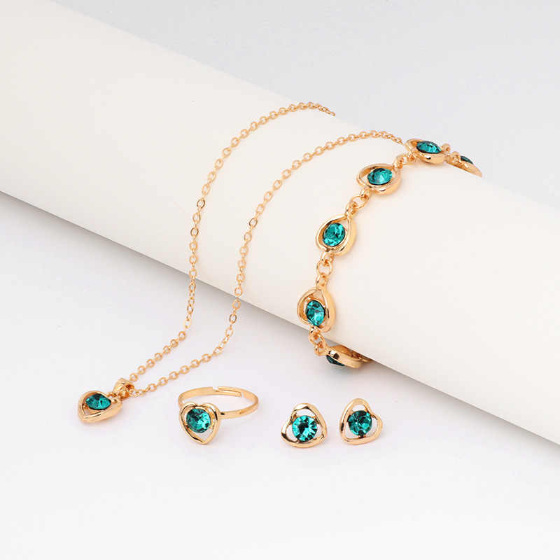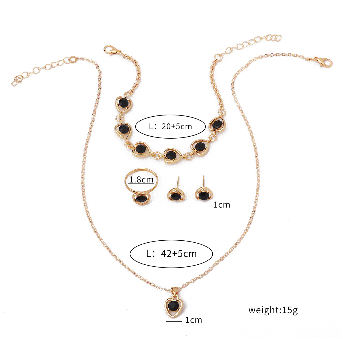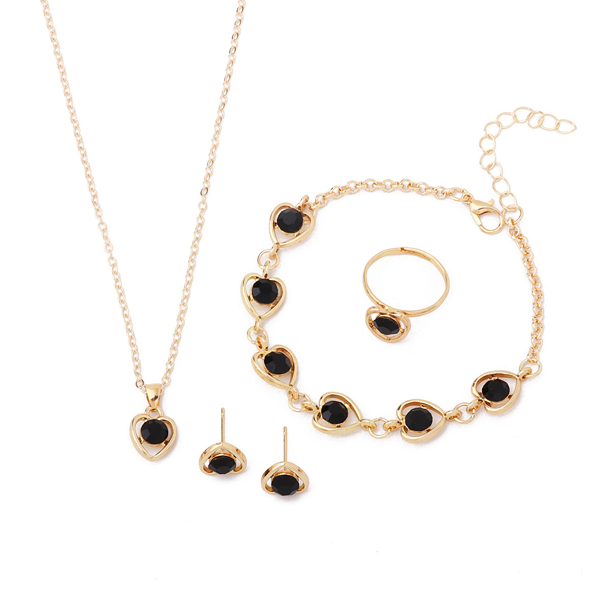 Zinc Alloy Jewelry Set, Stud Earring & finger ring & bracelet & necklace, with Crystal, Heart, gold color plated, 4 pieces & for woman, more colors for choice, Sold By Set