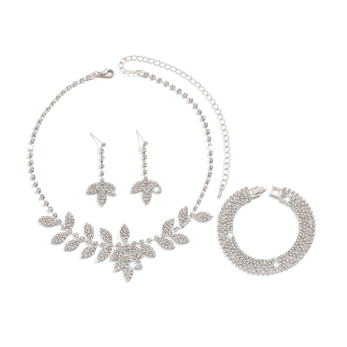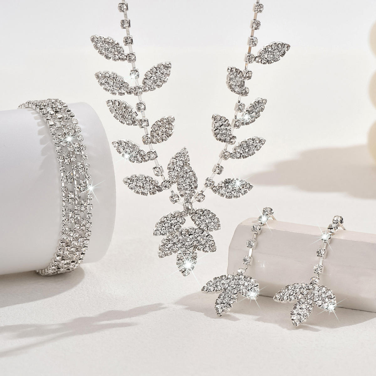 Zinc Alloy Jewelry Set, Leaf, silver color plated, different styles for choice & for woman & with rhinestone, Sold By Set