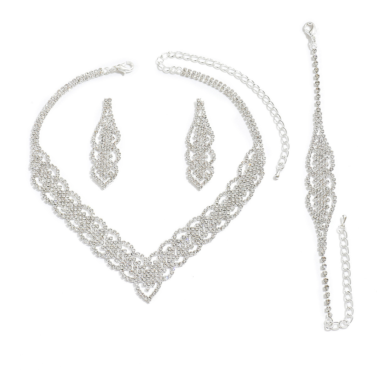 Zinc Alloy Jewelry Set, bracelet & earring & necklace, silver color plated, three pieces & for woman & with rhinestone, Sold By Set